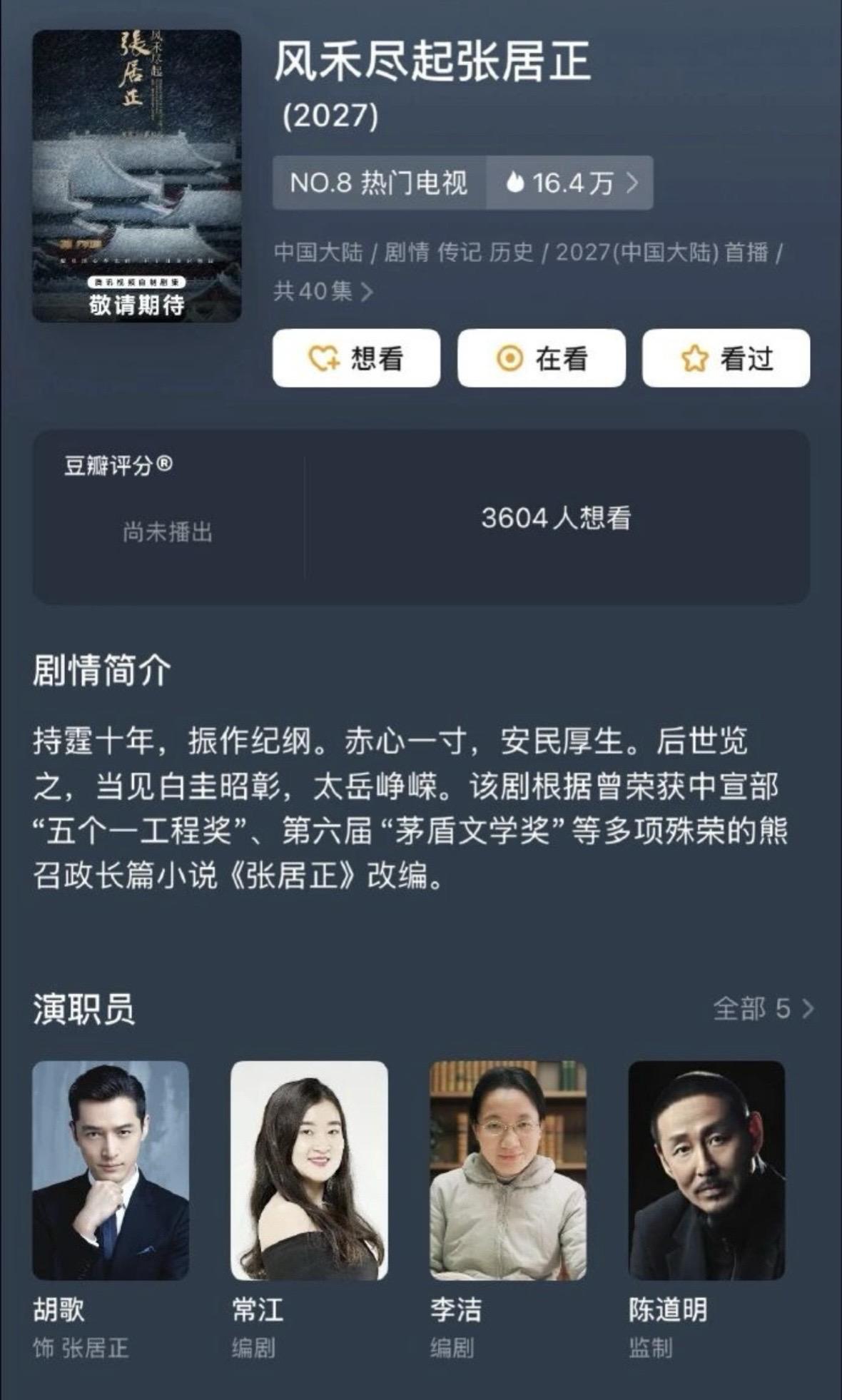 今日。电视剧《风禾尽起张居正》官宣胡歌饰演张居正,上次看胡歌老师的古装...