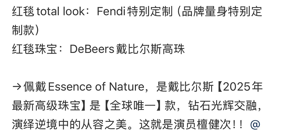 檀健次今晚fendi特别定制+戴比尔斯“全球唯一”最新季高珠的排面如何