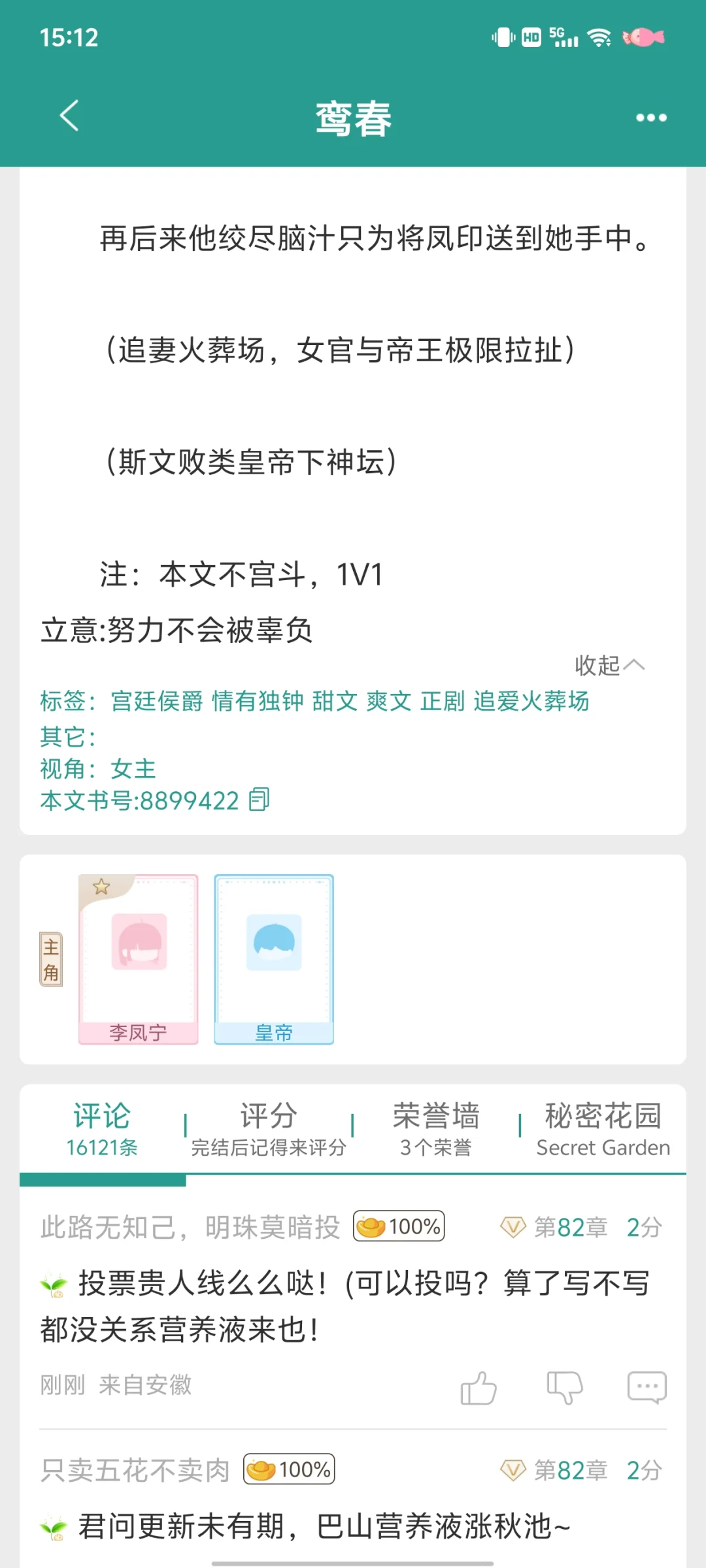 《鸾春》by希昀 刚完结的新文,一共82章 娇憨庶女vs深沉帝王, 上位者低头,追妻火葬场 这个作者文笔还可以,只要不抽风。