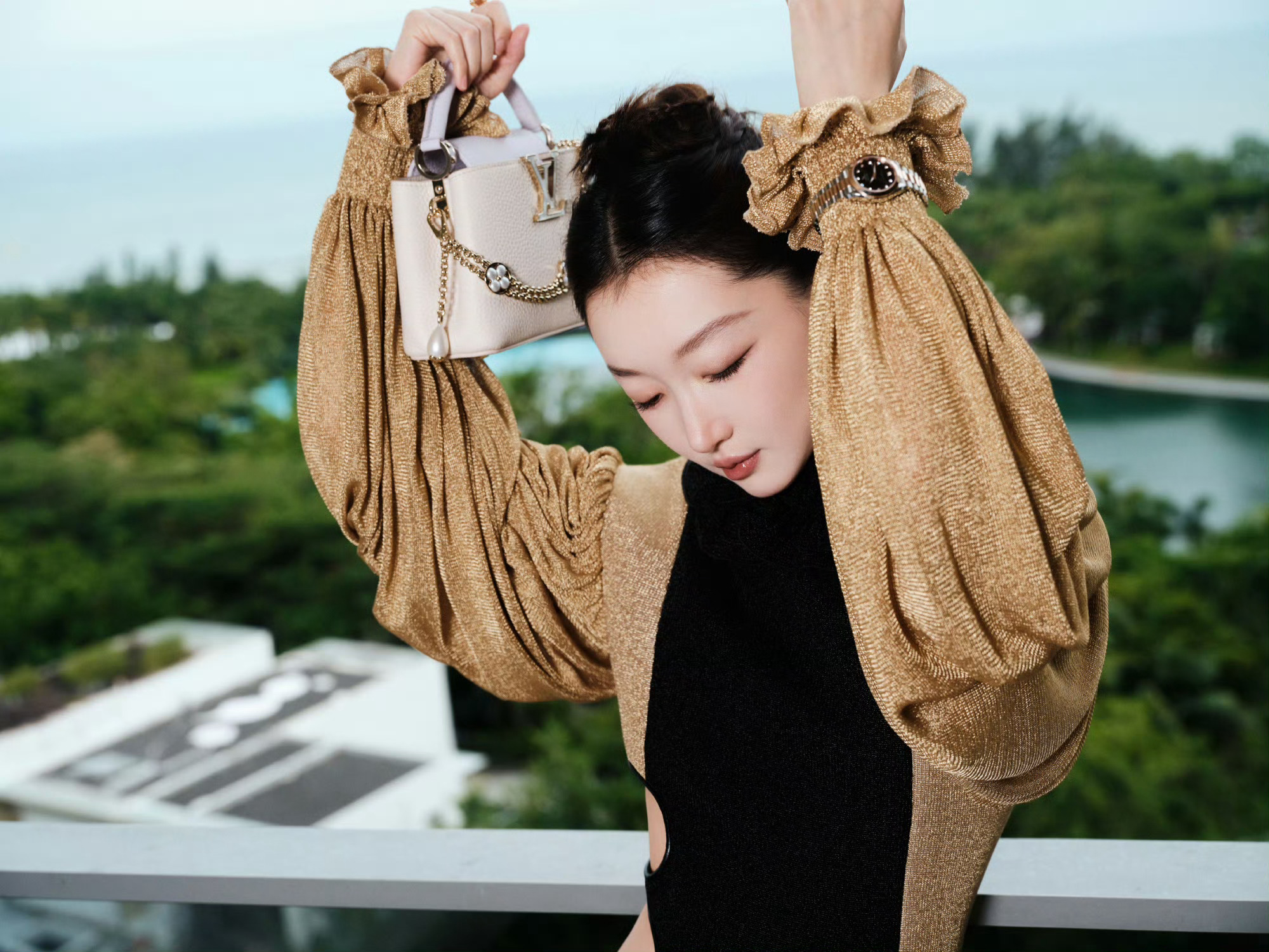 刘亦菲把死亡玫粉穿出了定制款的感觉,这种颜色普通人穿上分分钟黑三度,她居然能穿出