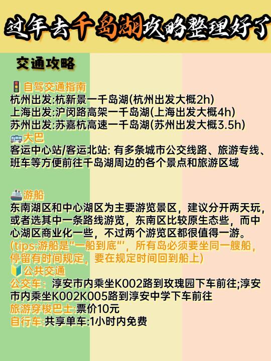 🔅内部交通:自驾方便,可沿淳杨线、淳开线等欣赏湖景;