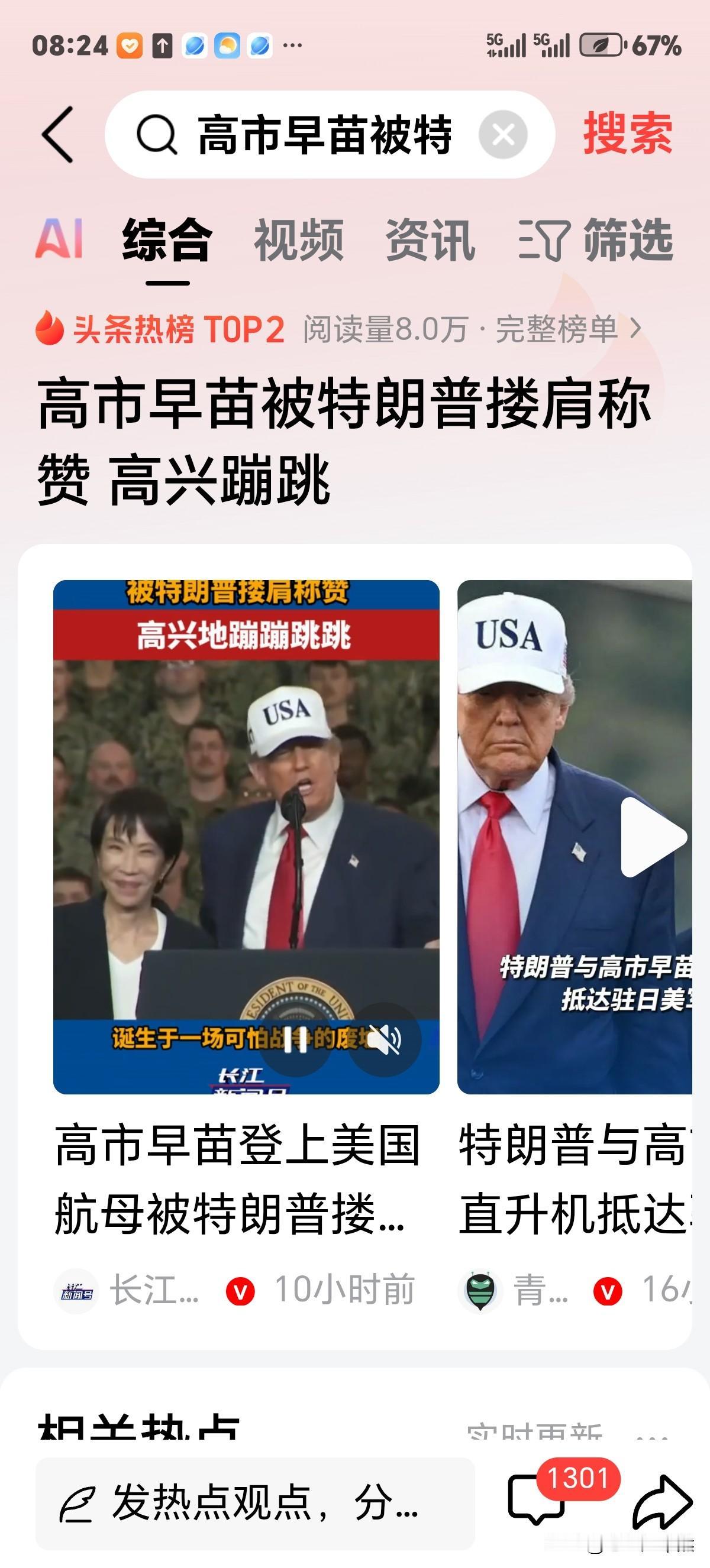 80岁特朗普,夸了几句56岁高市早苗后,神奇发生了!中年妇女秒变天真16岁少年,立码从老特头闺女,瞬间华丽转身,成为孙女!(按中国传统文化年龄差为20岁为一代人)又蹦又跳好可爱哟!至于日本民众是否认为高市早苗可爱?不晓得! 一句日本历史首位女首相,居然有如此魔法力吗?使世人感到不可思议,为啥?因日本当下不论雄性还是雌性当首相,皆得符合老特头愿望,顺者生,逆者亡!故而日本政客才把女性推上首相位置,目的明显是为方便与老特头交往,毕竟男女搭配干活不累俗语,适用于全人类,特别适用于富商出身特朗普,因此老特头才勾肩搭背说这句话。而高市早苗蹦跳举止至少叫我颇感懵逼。什么原因?答案很简单,日本从美国儿子,忽然变成孙子。又矮一辈份!这不知道日本民众心里什么想法?开心?还是沮丧哪?或者无可奈何?再或许认命?