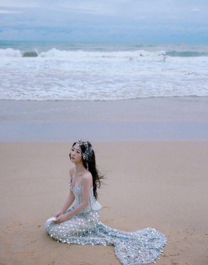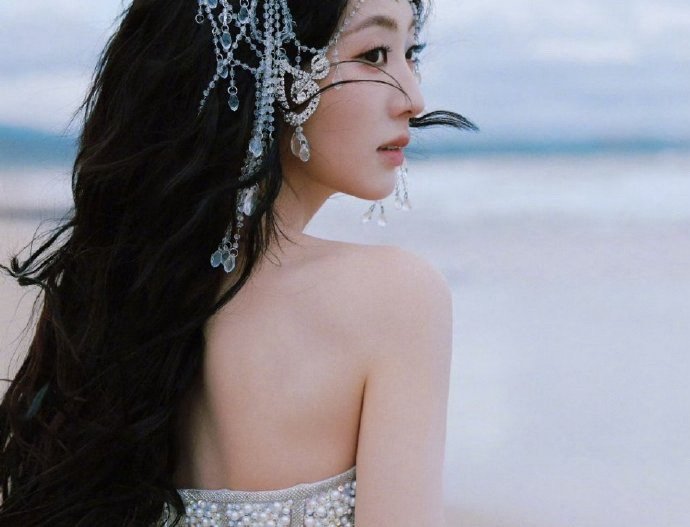 邢菲拖着一尾钻石裙邢菲穿钻石裙不费力就很美!自然动作带动裙摆和碎钻,清透妆容让