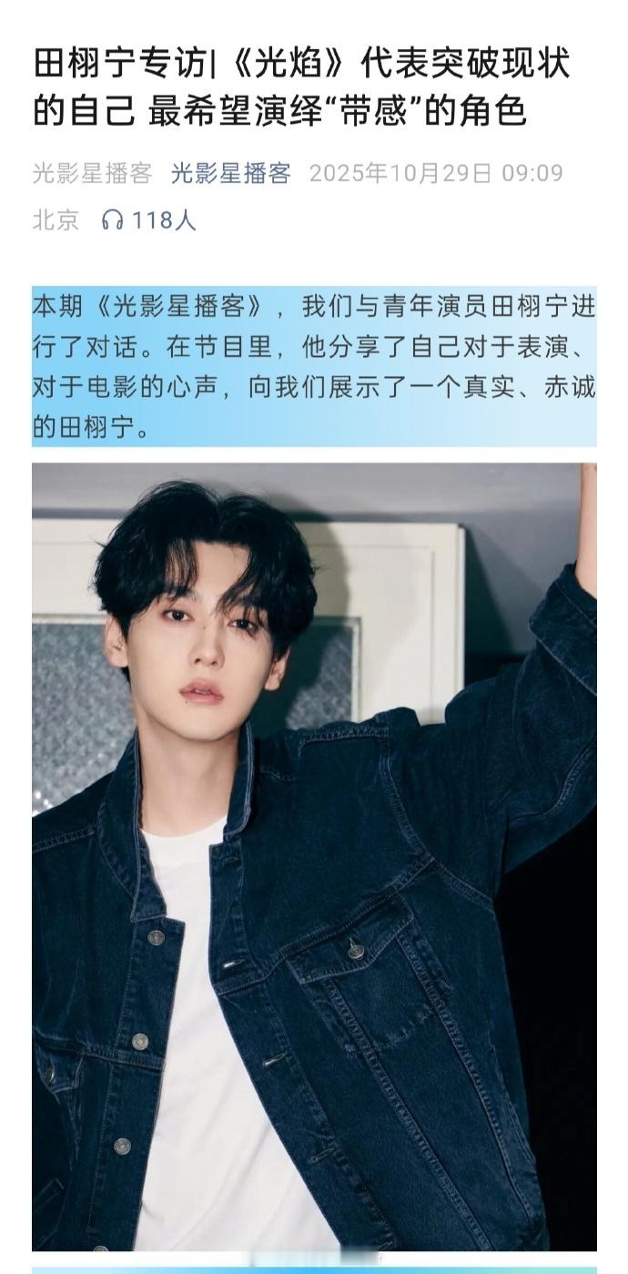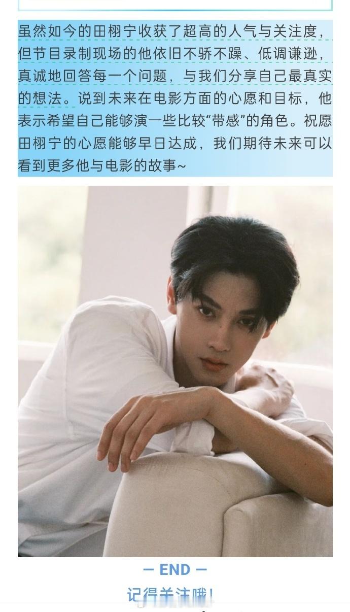 田栩宁压力最大的是自己还不够好田栩宁希望能演一些带感的角色 田栩宁不满足于现状,压力源于自我要求,也期待带感角色带来新突破!