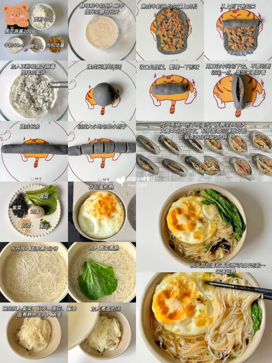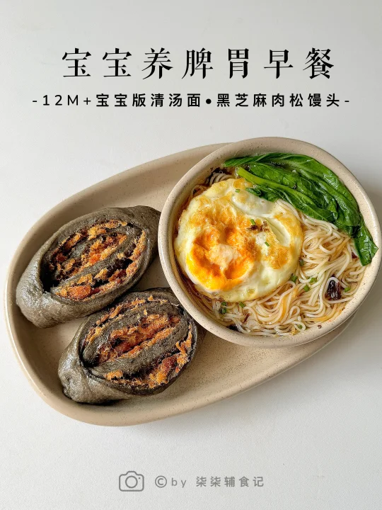 🥣黑芝麻肉松馒头➕宝宝版清汤面