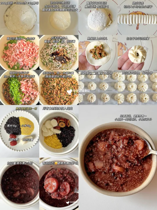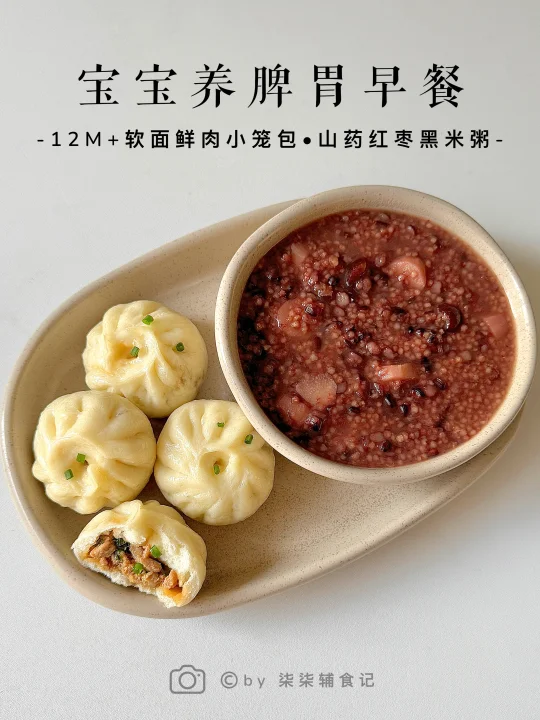 🥣软面鲜肉小笼包➕山药红枣黑米粥