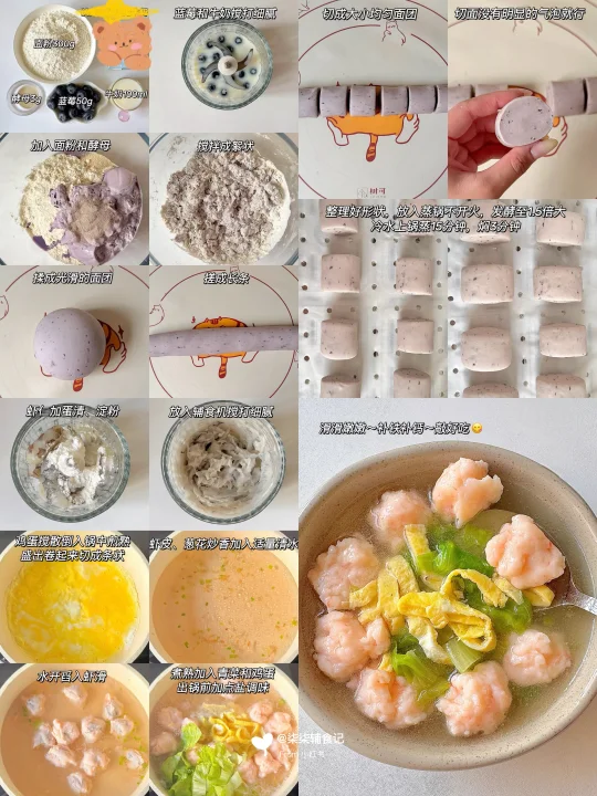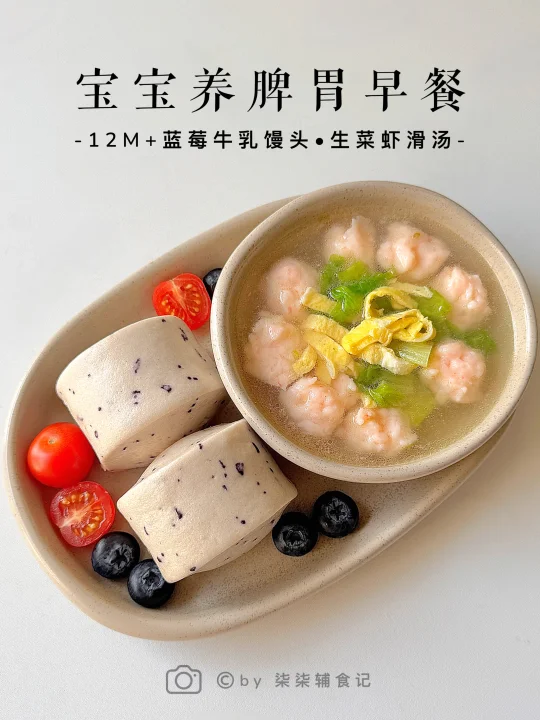 🥣蓝莓牛乳馒头➕生菜虾滑汤