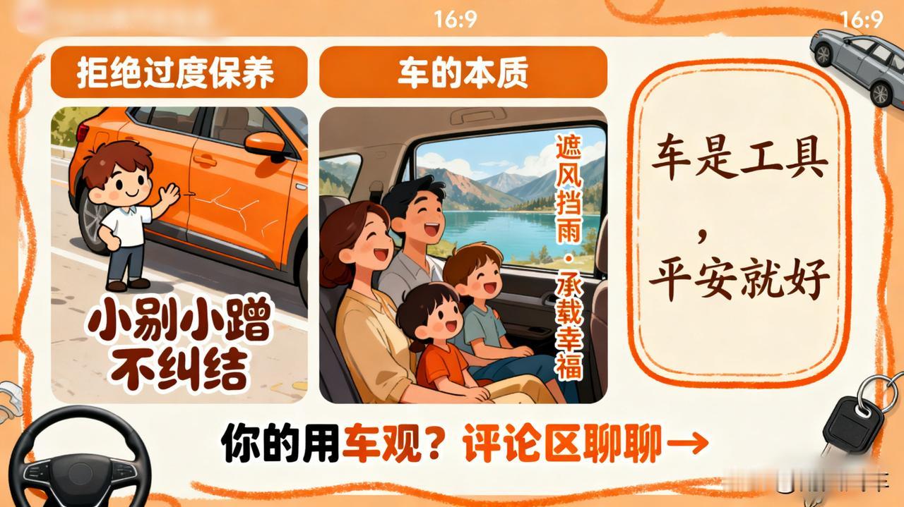 汽车博主最后一条忠告:车是工具,不是祖宗! 别为了一点小划痕睡不着觉,别盲目追求配置和品牌。它为你遮风挡雨,带你去看世界,承载一家人的幸福,这就够了。祝大家都能选到心仪的爱车,平安出行! 关于买车用车,你还有什么疑问?评论区见!