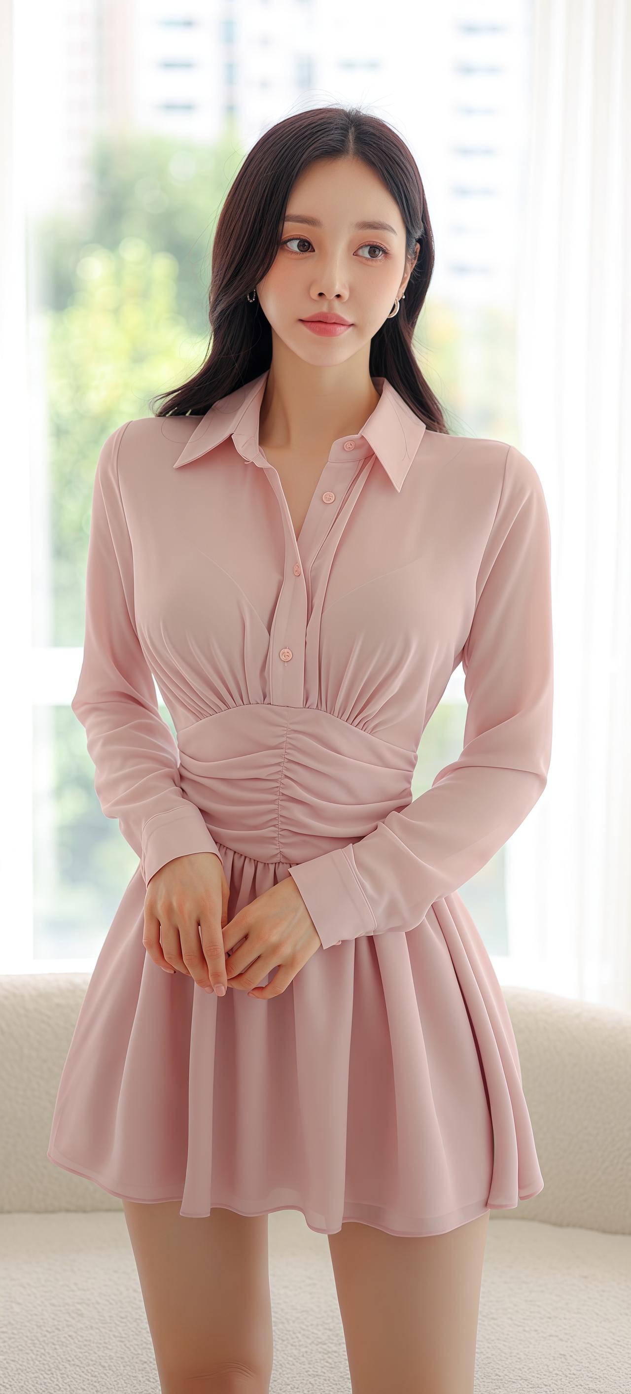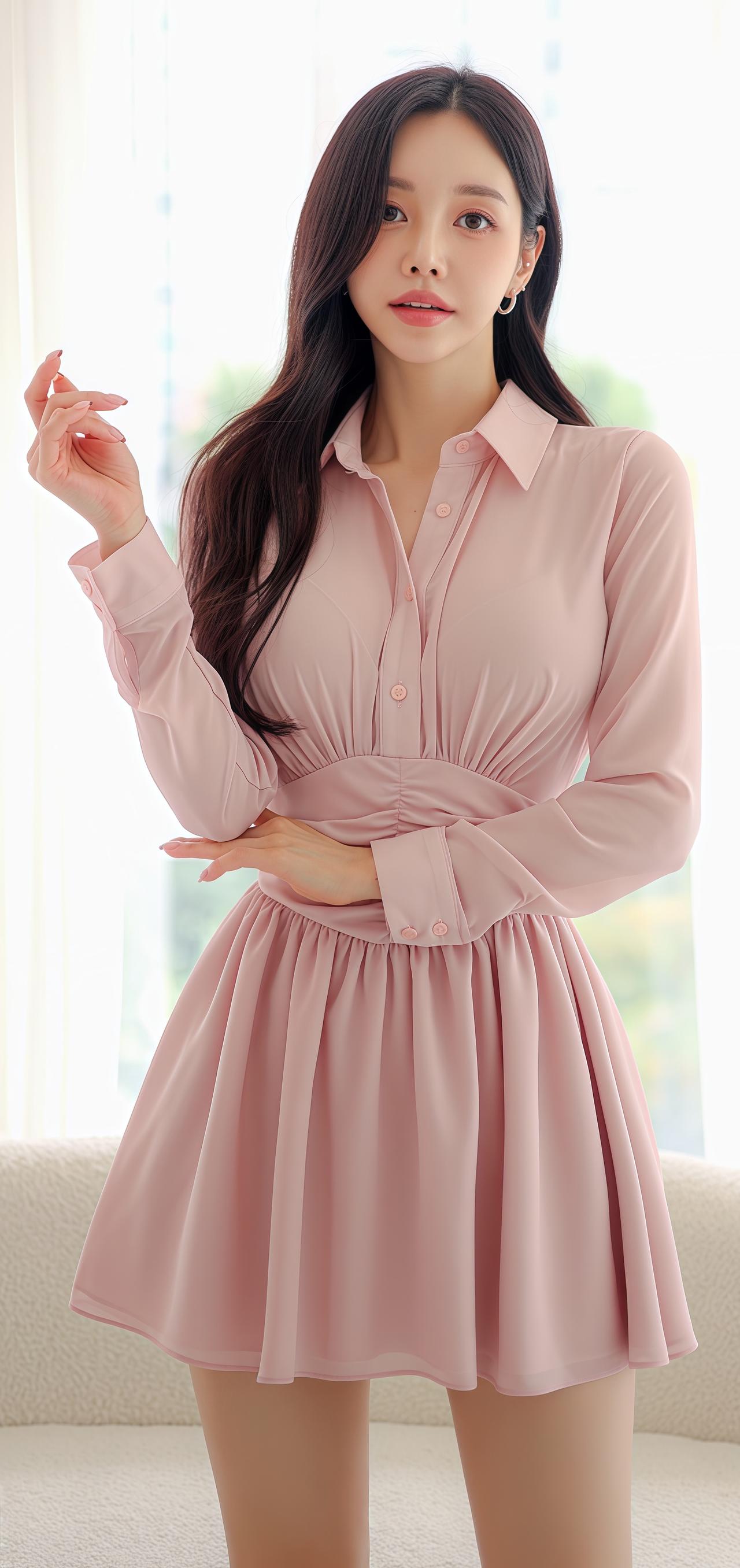 孙允珠穿粉色连衣裙好优雅!