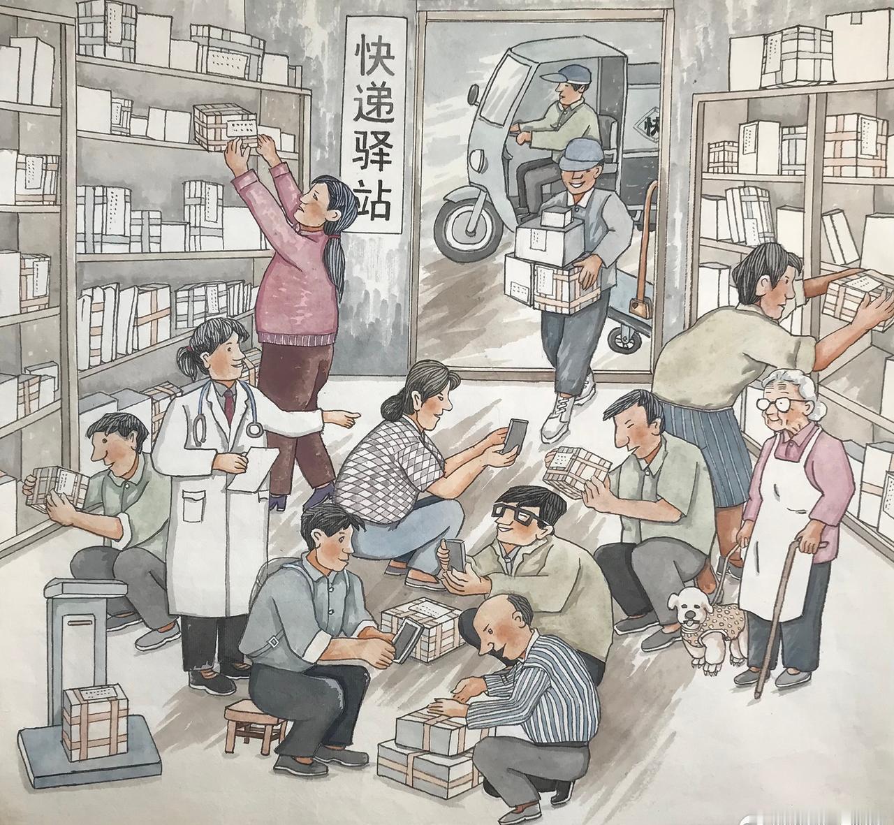 新闻漫画 小驿站 大温暖 红衣女孩踮脚取高处的包裹,戴眼镜的青年俯身扫码,粉绿衣男孩把纸箱托在胸前,像托起一轮“小太阳”,白发奶奶牵着小狗寻找自己的快递,眼神里满是期待。社区宣传员现场普及快递收取防护口诀,居民笑称,“取件顺路还能收关爱!”汗珠透背的快递小哥轻搬稳放,让旺季的“烟火气”多了一层安心。小驿站点亮大民生,物流提速、服务加温,把网购高峰汇成城市小区的秋日暖意。 融媒体记者 许亚平