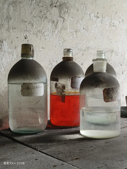 踏入一间空无一人的化验室,寂静瞬间将我笼罩。架子上、操作台面上,瓶瓶罐罐林立,有的残留着不明液体,有的布满岁月痕迹。曾在这里忙碌的化验员已不见,只剩它们静静伫立,似在诉说着往昔那些与实验相伴的时光。
