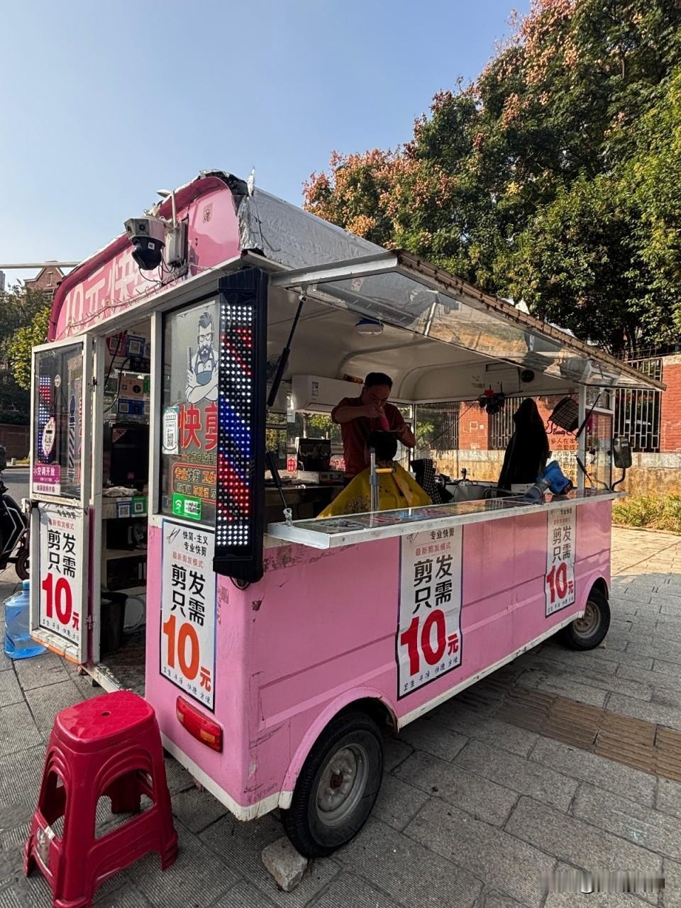 九派新闻10月29日讯(记者 蔡晓萱)武汉街头冒出辆“移动理发车”,十元快剪火了两年没涨价,成了“人气王”。 近日,记者在路口看到,这辆粉红色二手餐车改的“理发店”挺扎眼——车门一开就是工作台,上面摆着全套理发工具,旁边装了空调和电扇,车身上贴着“剪发只需10元”的大幅海报,还装了两个监控。35岁的老板万师傅正忙乎,手起刀落十分钟就给客人剪了个清爽发型,旁边等着的张阿姨说:“这师傅手艺靠谱,我跟了他两年,从来没涨过价,比去理发店省事儿多了。” 万师傅16岁就入行,做了快20年理发。之前他开过实体铺,也在路边摆凳做过露天快剪,后来听姐夫(同样做美容美发的)说餐买了辆二手,一用就是两年。“比露天剪得舒坦多了,想做就来,不想做就回去,全凭自己心意。”他说很,不用担心啥”。 价格方面,男士快剪10块,女士15点一拨,晚上七点到十点又一拨,日均50-60人,跟流水席似的。来的多是35-55岁的,都说他剪得“比去理发店排队强,还便宜”。生意火了,万师傅月入能到一万,比之前做实体还强,就是忙起来没人凑手。单身的他笑着说:“正缺个‘老板娘’帮忙,不然忙不过来,要是有合适的,赶紧给我介绍介绍。” 现在这“移动理发车”成了路口一景,路过的都得瞅两眼,有人说这模式新鲜,有人说他会找路子,你觉得这“会跑的理发店”能长久不?