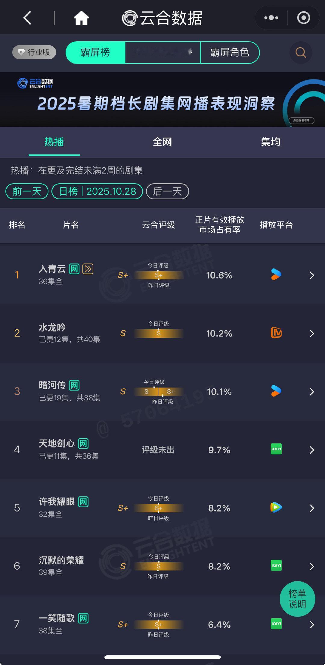 水龙吟10.2%持续第二 罗云熙水龙吟10.2%