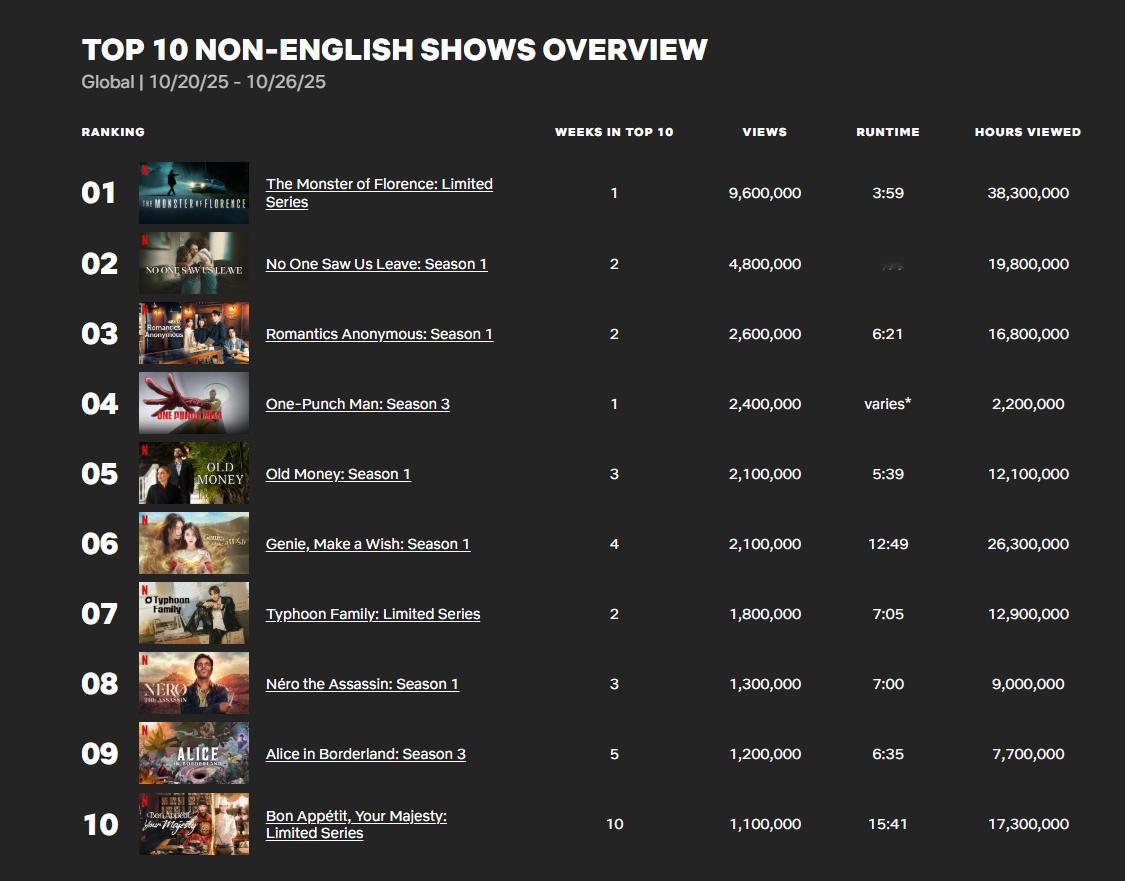 10/20~10/26 Netflix非英语区电视播放量Top10入榜韩剧