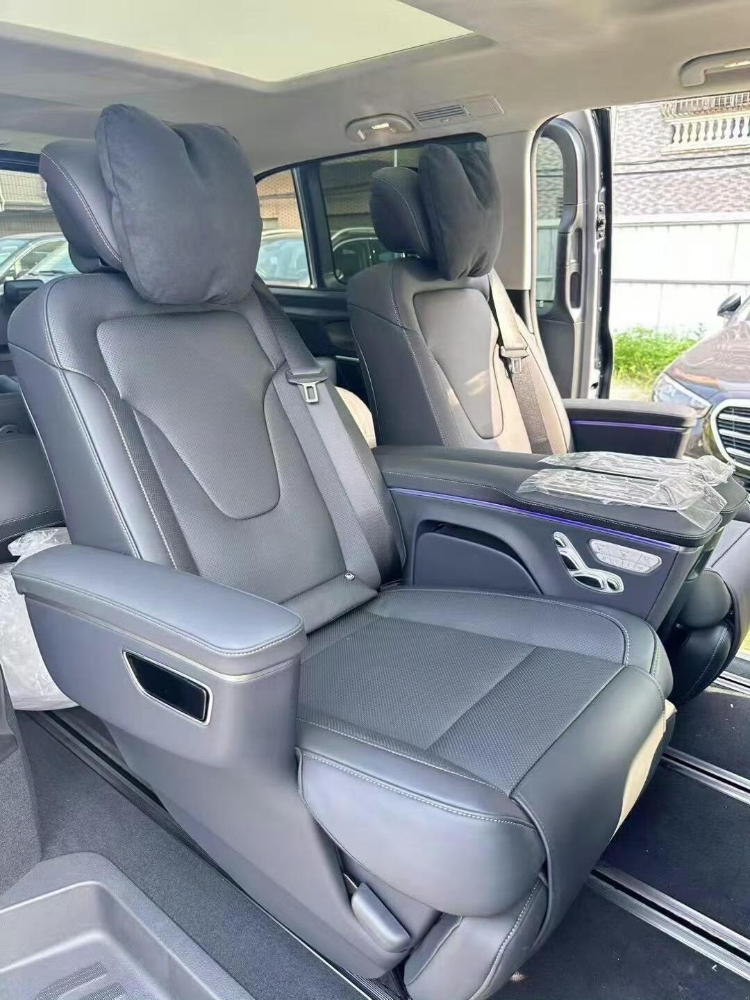 奔驰V300L豪华款,银色外观低调又不失大气,在阳光下还会闪耀独特光芒,开在路上回头率超高。 黑色内饰经典又奢华,质感满满。坐进车内,仿佛进入一个静谧又高级的空间。 像2025款金冠V-Class基于奔驰V300L打造,虽没立标,但前唇和导流槽的银色装饰条加分不少。它的阿波罗版大灯组还做了调整,3条斜向灯带很有特色。其指导价在61.8 - 95.8万元,这配置和价格,对追求豪华体验的人来说,很有吸引力。 除了外观和内饰,奔驰V300L豪华款的性能也十分卓越。它搭载了强劲的发动机,动力输出平稳且充沛,无论是城市道路的频繁启停,还是高速公路的长途奔袭,都能轻松应对。变速箱的换挡逻辑清晰,几乎感觉不到顿挫,为驾驶者带来流畅的驾驶感受。 再看2025款金冠V - Class,车内空间布局合理,座椅的包裹性极佳,长时间乘坐也不会感到疲惫。而且车内的隔音效果一流,高速行驶时,外界的噪音被隔绝在外,只留下悠扬的音乐声伴你一路前行。对于预算充足,又渴望高品质出行体验的消费者而言,它无疑是一个上佳之选。