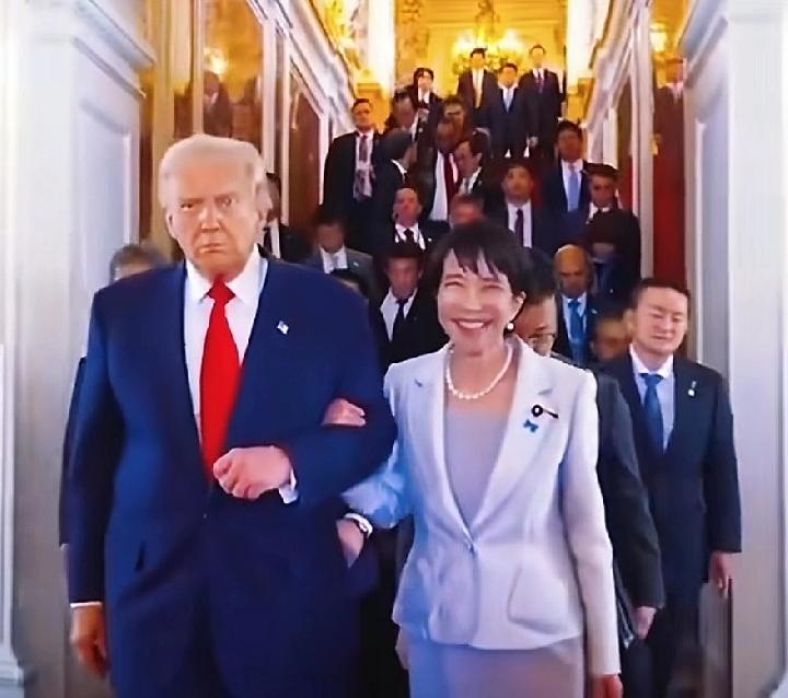 特朗普真有一套,年近八旬了还能用美男计把高市早苗弄得神魂颠倒,被特朗普一搂一抱,加上两句恭维话,高市早苗彻底失魂了。你瞧她看特朗普的样,眼睛色色的,满脸谄媚,完全是一副没有见过男人的样子。难怪她毫不犹豫地答应帮美国造船、炼稀土、投资金 ,急切地给特朗普献了大礼,也正中了特朗普的下怀。 特朗普和高市早苗这样的举动,说白了特朗普是政客,而高市早苗是捐客,两人勾肩搭背、狼狈为奸,绝不会干出好事来。 调侃归调侃,对于美日的任何举动,我们绝不能掉以轻心。尤其对日本更要严加提防,防止高市早苗把日本带向军国主义之路。特朗普当众搂住高市早苗释放了哪些信号 你认为高市早苗会带领日本走向何方 高市早苗准备的“见面礼”能缓解美日关系吗 (图片来自网络)