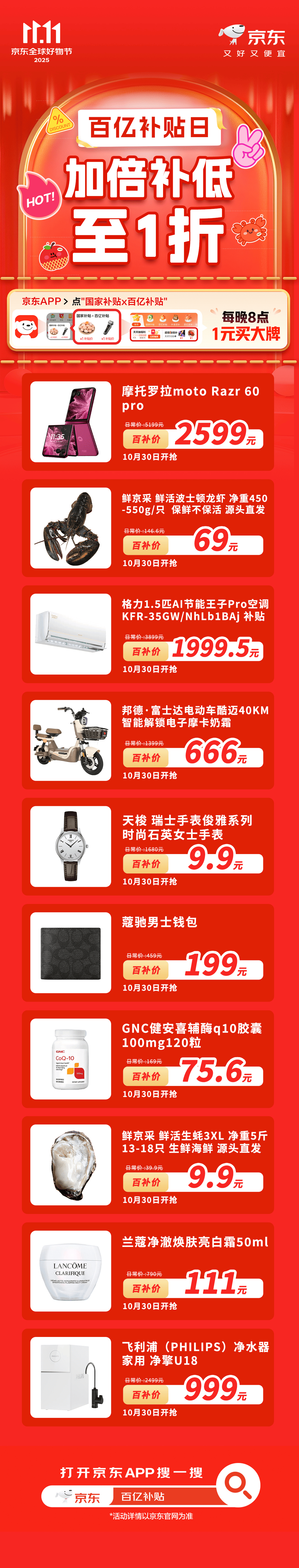 家人们,干饭了!不对,是干货来了!10月30日晚8点,京东11.11连续3天疯狂
