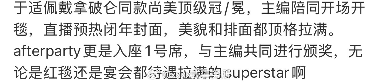 于适昨晚elle待遇怎么没人提,主编陪同开场直接预订闭年刊封面,入坐一号席,和主