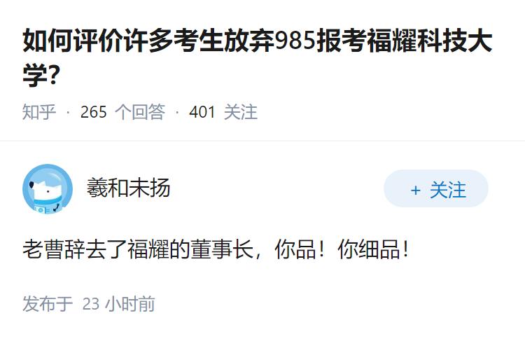 如何评价许多考生放弃985报考福耀科技大学?