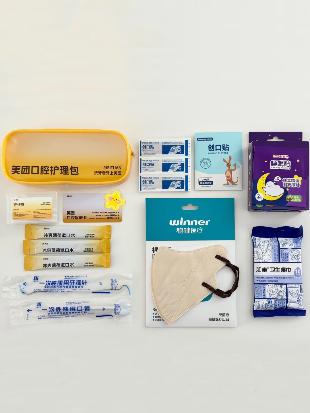 ✔️口腔差旅包:便携软包、漱口水、牙线、口腔检测探针、口腔镜、美团权益卡等!
