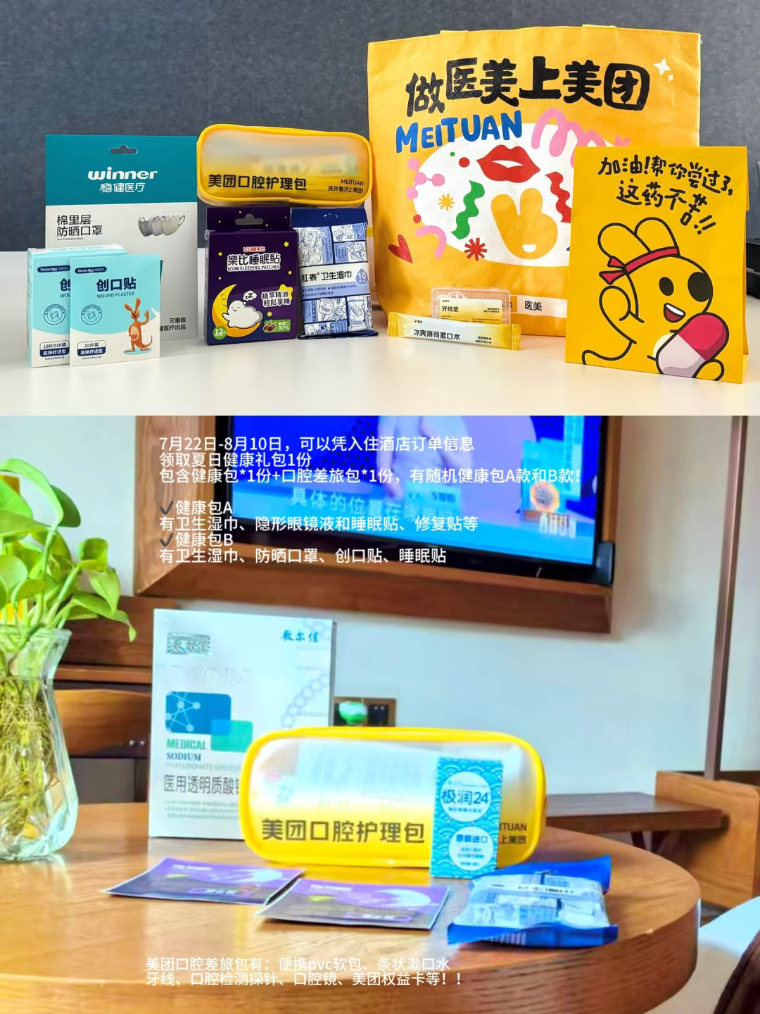 在成都市区都住的尚锦品酒店,就在春熙路附近,步行5分钟到春熙路、太古里,位置超方便!惊喜的是,房间里还有美团的健康随行"大礼包!原来是购买指定产品,7月22日-8月10日,可凭入住酒店订单信息,领取夏日健康礼包👉包含健康包(A款和B款随机一份)+口腔差旅包1份