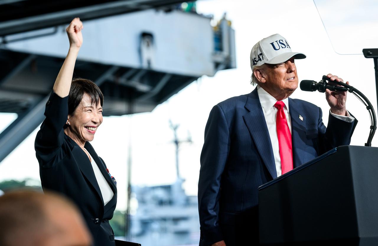 日本网民怒批高市早苗谄媚【“看起来就像狂热支持者”,高市早苗对特朗普的“夸张表现”受日本网民质疑】10月28日下午,访日的美国总统特朗普在日本首相高市早苗的陪同下乘美国总统专用直升机抵达驻日美军横须贺基地,两人登上美军“乔治·华盛顿”号航空母舰并在舰内发表了演讲。两人在讲台上的互动视频在日本网络上热传,一些日本网民批评高市早苗的肢体动作“夸张”,“看起来就像特朗普的狂热支持者”,“有失日本颜面”。也有一部分日本网民认为,高市早苗与特朗普建立起非常亲密的个人关系,这对日本来说“不是坏事”,有助于推动美日关系。日高校副校长说高市早苗做的过火(环球网)