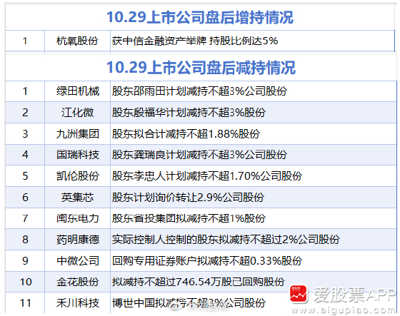 10月29日增减持汇总和重点公司业绩预告a股
