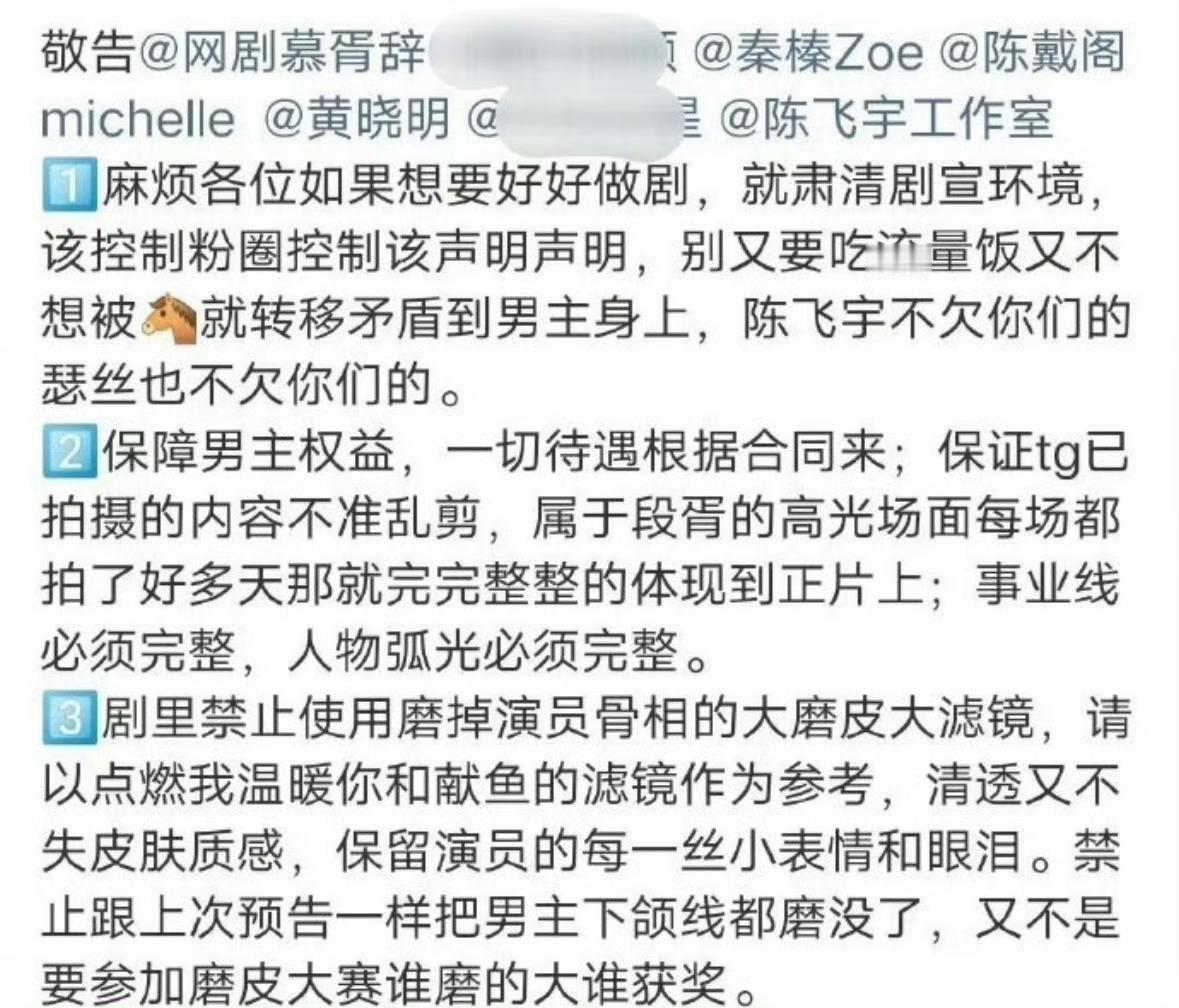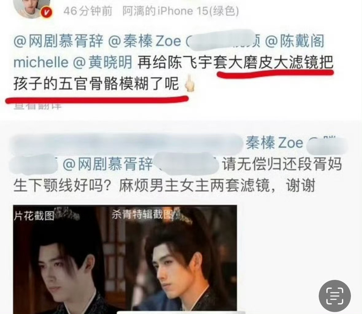 陈飞宇粉丝向慕胥辞提出诉求:不要用大滤镜大磨皮