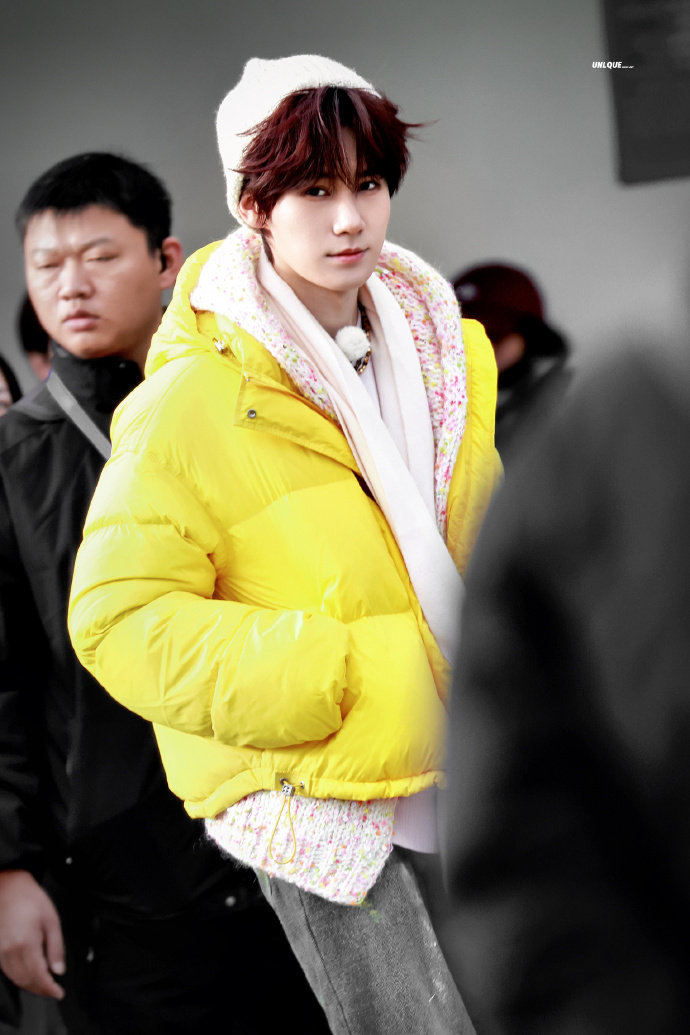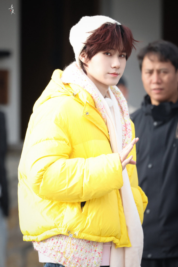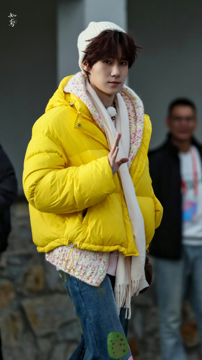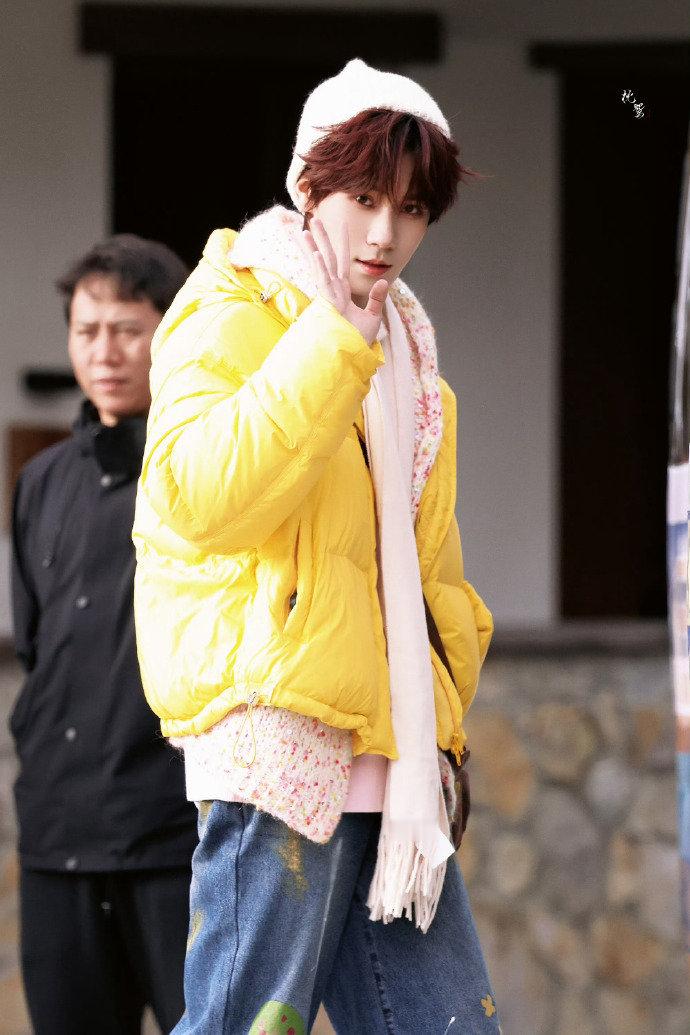 张真源白色毛线帽黄色羽绒服look 张真源好可口的奶黄包