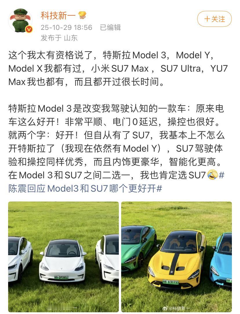科技新一:特斯拉model3和小米SU7一样好开,内饰更豪华,智能程度更高,同时外观好看,所以开SU7更多! 其实这里有一个先决条件就是小米SU7 max车型才是最完全版本的,标准版车型,由于算力低很多功能没有办法完全实现。 各位是怎么看的?欢迎评论区留言。