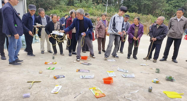 与此同时,在菱角塘镇花山岭村德孝广场,一场由菱角塘镇新时代文明实践所举办的“情暖重阳,欢乐游园”老年趣味游园会也如期举行,吸引了村内众多60岁及以上的老年人踊跃参与,共庆佳节。