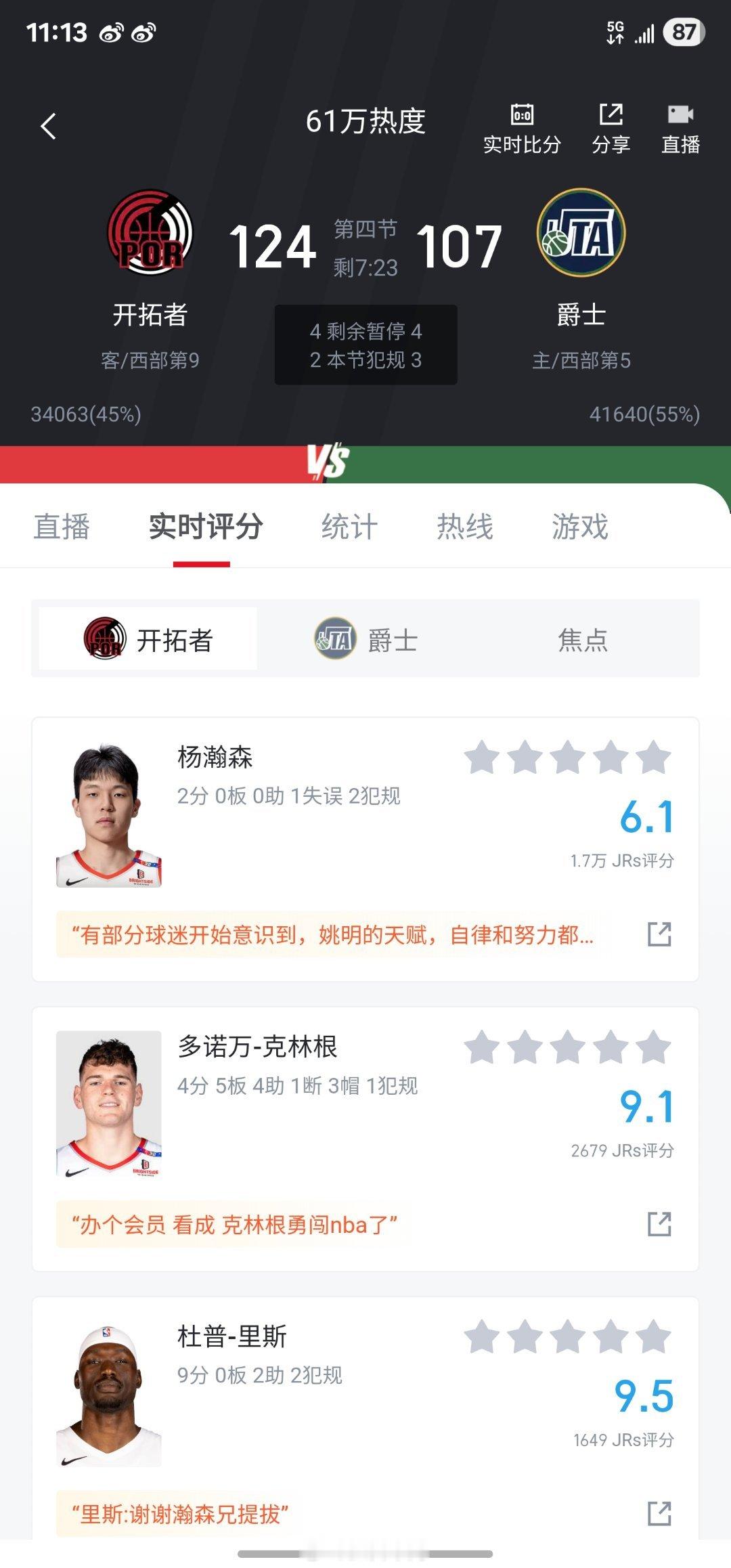 前面刘维伟指导曾建议杨瀚森学习克林根。其实,作为NBA球队的先发级中锋,大根应该是小杨长远学习的模板。眼前,小杨就跟咱“老熟人”杜普里斯多学习。在有限上场时间里面,知道自己要干啥、能干啥。别去做不擅长的事,比如里斯对抗能力也不行,人家就蹲底角扔三分[允悲]