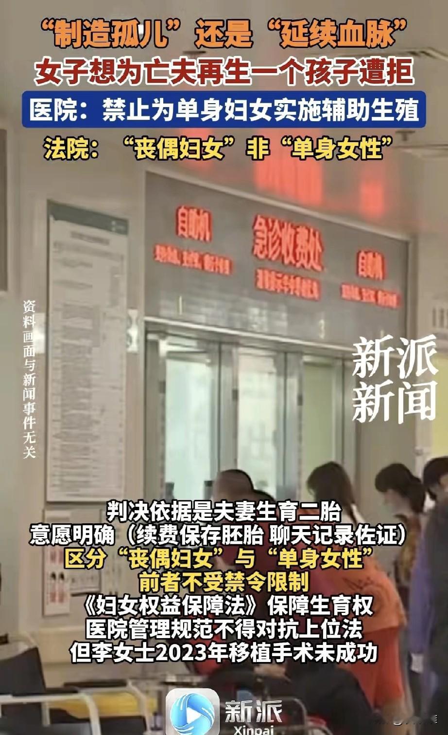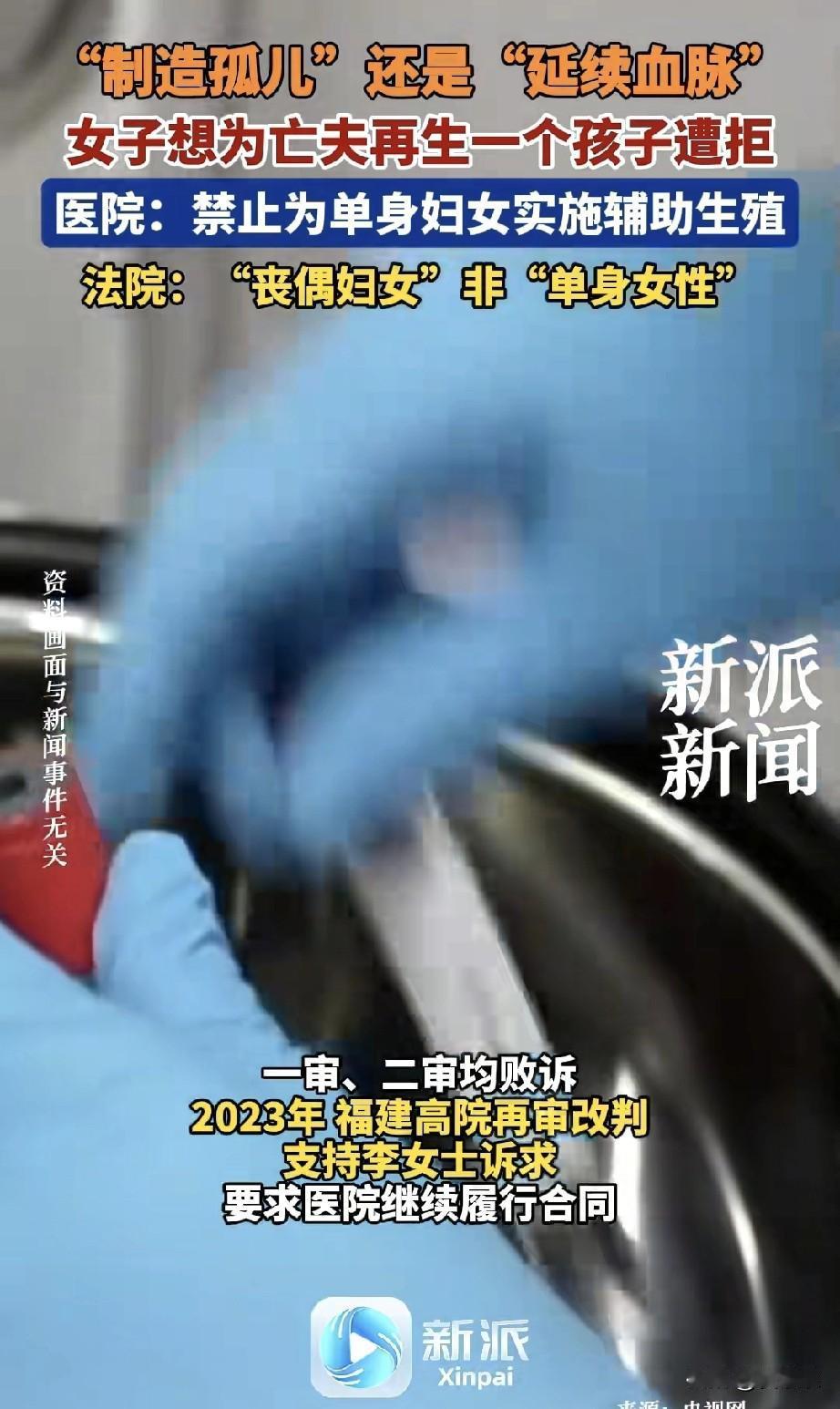 “无法延续的爱!”女子在丈夫去世后,希望通过之前冷冻的胚胎,再为丈夫生一个孩子,却遭到了医院的拒绝,女子把医院告上法庭。多年以前,女子和丈夫通过辅助生殖技术生下一个孩子,还剩下两个胚胎一直保存在医院,后来丈夫不幸离世,女子认为如果能再生一个孩子是对全家的一种安慰,而医院以:必须由夫妻双方共同签字,且单亲家庭可能影响孩子身心健康为理由,没有同意她的请求。 女子把医院告上法庭后,经过一审,二审,法院都没有同意她的请求。后来经过高院再审,法官们综合考量了她与丈夫生前的生育意愿,全家的支持态度,最终同意医院继续为她实施手术,可遗憾的是手术并未成功!