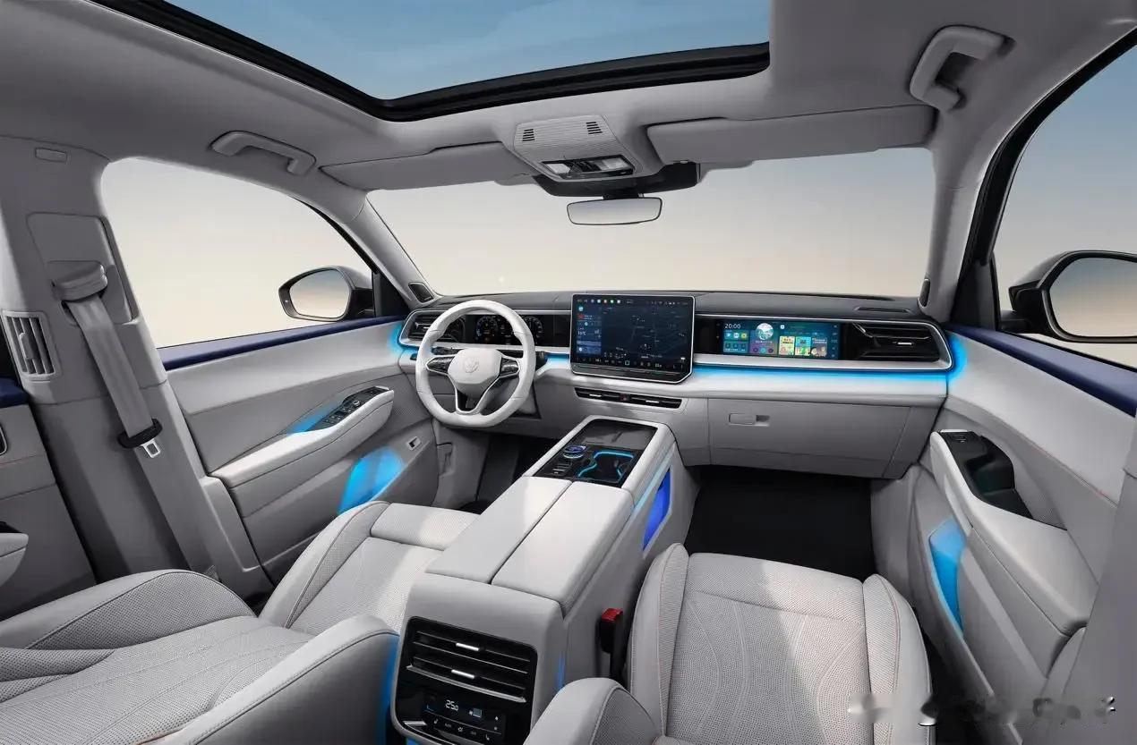 一上车,10.3英寸全液晶仪表盘、15英寸2K悬浮式中控屏、11.6英寸副驾娱乐屏等6块屏幕相互配合,信息显示又全又清晰。开车时,仪表盘能把车速、油耗等关键信息一目了然地呈现出来;中控屏操作流畅,导航、多媒体功能用着特顺手;副驾娱乐屏让副驾人员可以尽情追剧、听歌,不无聊。 而且,这6块屏还能实现信息共享和交互,比如导航信息能从中控屏推送到仪表盘上。整体营造出了一个超有科技感的智能交互空间,让驾驶变得更有趣、更便捷。