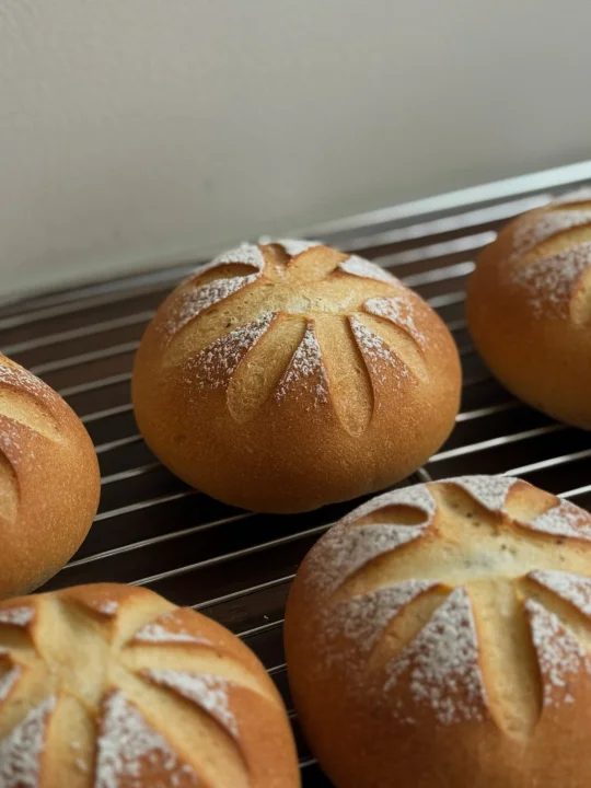 发酵35分钟左右,拿出筛面粉,割米字花纹