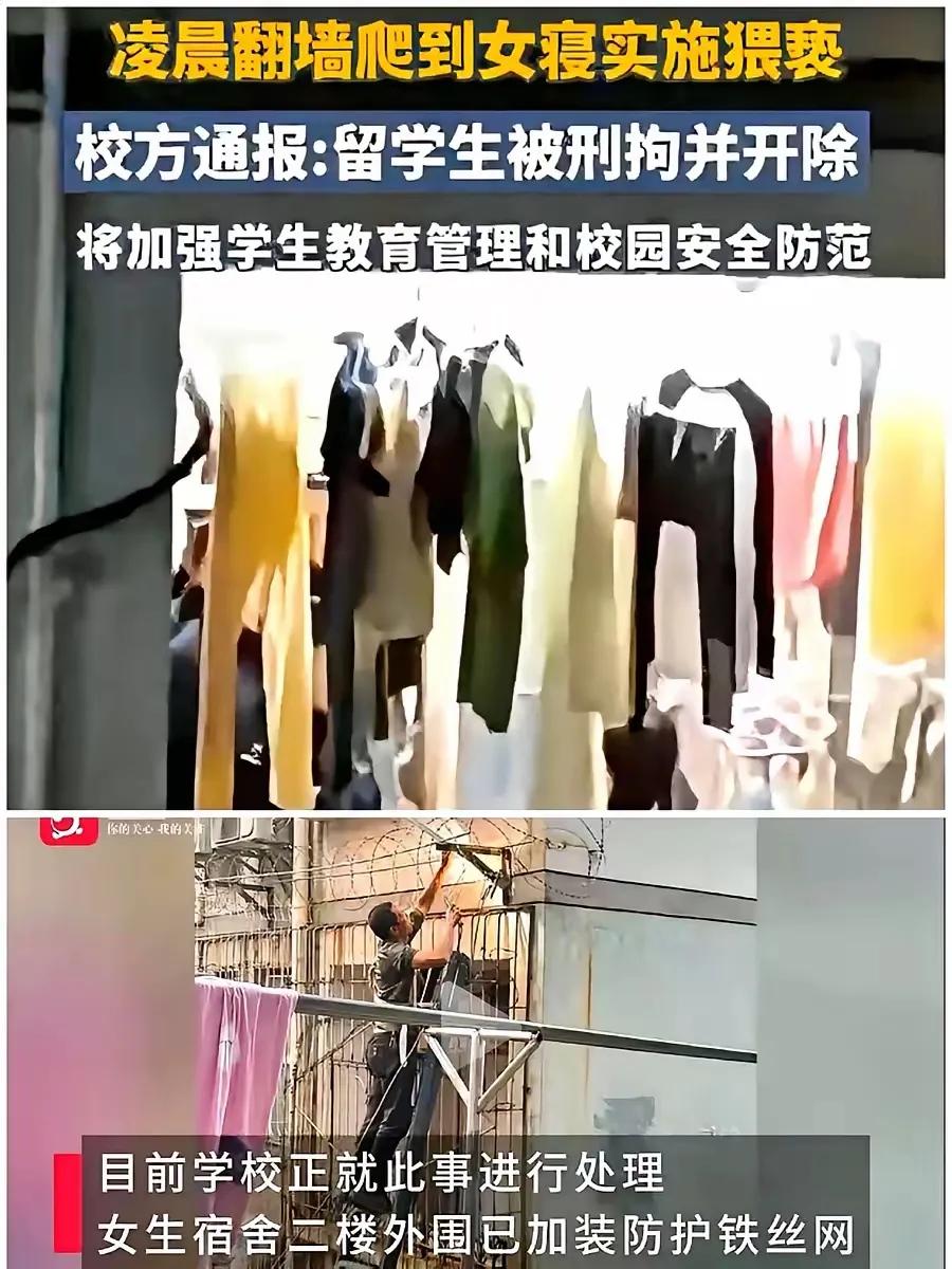 女生宿舍楼装上铁丝网,尴尬了谁? 第一,三峡大学可能会比较尴尬 装上的铁丝网,名义上是保护宿舍里女生的安全,但实际上也把大学内校园不安全的情况公之于众 根据媒体相关报道,说此前曾经遭遇过这类的问题,只不过都没怎么当回事儿,一直到这次那个留学生徒手爬上2楼,把事情闹大了 现在留学生被开除了,学校里边也开始着手把铁丝网装上了。 如果学校里一早就把这个问题处理妥善,应该就不会发生这样的事件了。 防患于未然,防微杜渐永远都没有错 所以现在三峡大学肯定会比较尴尬,估计这也是全国当中唯一一个宿舍楼外装铁丝网的大学吧? 第二,吸纳留学生的高校尴尬 从之前的重庆理工大学,到现在的三峡大学,很多大学的留学生都会存在多多少少的问题 为啥要吸纳这些国外的留学生?学校有自己的安排和计划。 但是相关的管理得做到位,你至少不能对本校学生造成安全方面的问题 从目前反馈的情况来看,很多人对于外国留学生是高看一眼的,甚至对他们有所优待 包括在学费上住宿条件上等等都要比国内的学生更加优惠,这种超国民待遇也是让公众接受不了的 这档的事儿一出,那些非常热衷于吸纳国外留学生的高校,该长点心了 留学生也是一个学生,不应该区分来看待。校园本就是一个自由平等的地方,还请领导长长心。