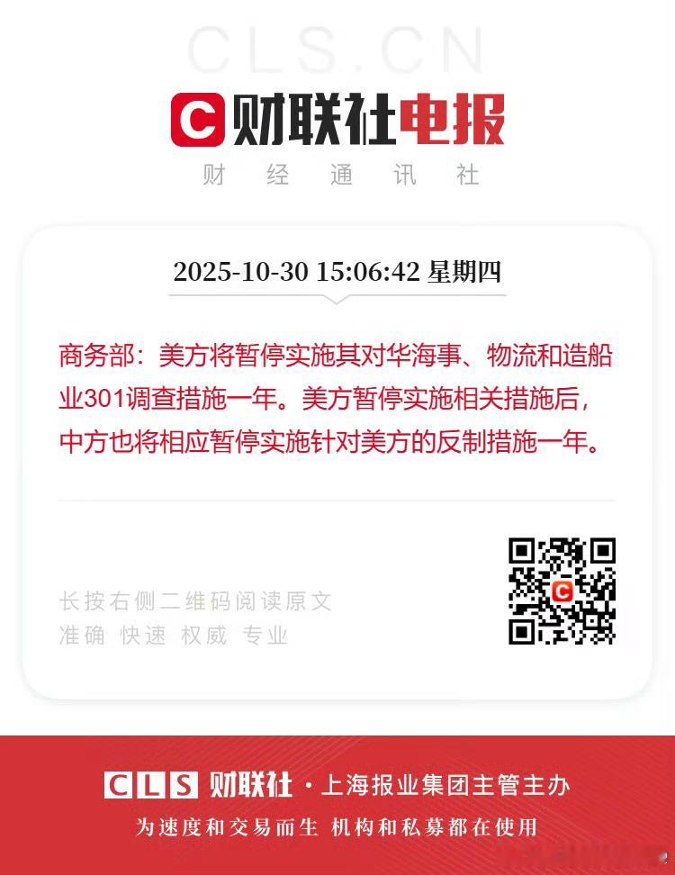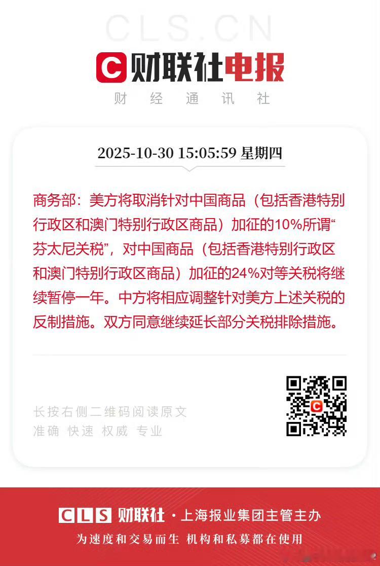 看来这次中美谈判成果还是挺丰硕的,大部分措施比如穿透管制,船舶费用,24%关税都减免了,另外还新增了10%的额外关税减免。