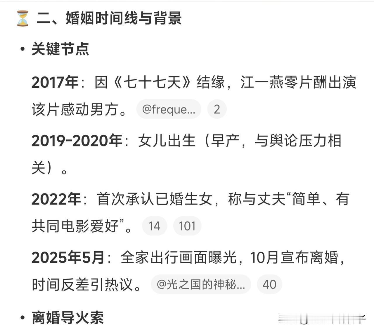 大家发现没有,敢大方秀恩爱的明星夫妻,婚姻生活都不会差! 10月30日,演员江一燕上了热搜,原因是在节目中自曝已经离婚,婚姻生活一直比较低调,这次可算高调一把。 说实话,如果不是看到网上的消息,都不知道江一燕已经结婚,更不晓得老公竟然是赵汉唐,还挺眼熟,而且还有女儿。 再看看两人的婚姻时间线,给人感觉很多信息,都是被爆料,或者被八卦媒体拍到,才出来承认或者回应。 当然,明星可能有很多顾虑,低调一点也是好事,不过,大方分享幸福,才能得到更多的祝福,啥事都藏着掖着,就有点难以理解了。 给人的感觉,敢大方秀恩爱的明星夫妻,婚姻生活都不会差。 简单举几个例子:孙俪和邓超,经常分享生活日常,一家四口出席活动,有时还各种调侃和互动,大方撒糖,从不遮遮掩掩。 谢娜和张杰,两人经常因为秀恩爱登上热搜,甜蜜程度,自然不用多说。 其实,这样的明星夫妻还有很多,可以说,举不胜举,几乎都有共同点,幸福感溢出屏幕。 当然,江一燕和前夫在娱乐圈并不活跃,知名度也不算高,从结婚生子,再到离婚,让网友内心毫无波澜。