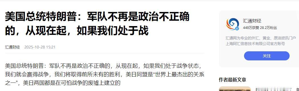 特朗普宣布美国不再讲政治正确:将动用一切手段赢得战争 10月29号,特朗普在日本横须贺美军基地的“乔治・华盛顿”号航母上一开口,就把全球舆论炸得沸沸扬扬。对着满甲板的驻日美军和日本自卫队士兵,他直白宣称美国要“以史无前例的方式赢得战争”,更撂下狠话说“从今往后,不再讲政治正确”,强调保卫美国可以动用一切必要手段,压根不受传统规范的束缚。 这可不是空泛的竞选口号,毕竟是在核动力航母这种充满威慑意味的场合,又是刚和日本新任首相高市早苗签完防务协议后发表的演讲,每句话都透着实打实的强硬姿态。 要理解这席话的分量,得先搞明白特朗普嘴里“不讲政治正确”到底意味着什么。这词在美国政坛搅了十几年,原本是民权运动后用来保护少数族裔、弱势群体的软规则,可这些年早被玩得变了味。就像有人吐槽的,名校招生给少数族裔加分,反而让成绩好的普通学生受了“反向歧视”;企业高管说错句话碰了“政治正确”红线,立马就得辞职道歉。 保守派早就骂这是“思想警察”,特朗普上一任时就老跟这规矩对着干,现在干脆公开说要彻底抛开,本质上就是要撕毁过去那些捆着手脚的“条条框框”。 这次在航母上把话说死,明眼人都能看出是冲着当前的国际局势来的。眼下美国在俄乌冲突里陷得挺深,对乌援助的钱袋子快见底了,国内两党吵得不可开交。 特朗普之前就跟泽连斯基闹过“白宫骂战”,他的盟友甚至喊着让泽连斯基“下台”,现在说“不讲政治正确”,潜台词就是往后援助不援助、怎么援助,只看美国的利益,不用再顾及“支持民主盟友”的政治正确说辞。 更别提亚太这边,高市早苗刚承诺要把日本国防开支提到GDP的2%,特朗普这时候放狠话,既是给盟友撑腰,也是在释放“不惜一切代价巩固霸权”的信号。 他说的“动用一切必要手段”,可不是随便说说的空话。回顾这几年的动向,美国早就在往“挣脱束缚”的方向走了。之前对中国搞半导体制裁,搞出个“50%穿透规则”,连被拉黑企业持股超50%的子公司、孙公司都一并封锁,压根不管全球供应链会不会乱。 这种“连坐制”放在以前,多少还得顾及点国际社会的看法,现在特朗普直接把“不讲政治正确”摆上台面,意味着往后类似的操作只会更狠,甚至可能突破更多常规底线。 这话一出口,美国国内先炸了锅,跟之前特朗普和泽连斯基骂战后的分裂局面如出一辙。他的支持者拍手叫好,说终于不用再被“虚伪的规矩”捆着了,“保卫美国本来就该实实在在,别搞那些虚头巴脑的”。 可连不少曾经投他票的保守派都觉得不对劲,在Reddit上吐槽“做得太过分了”,说他这行为“像个真正的小丑”,担心这么搞会砸了美国的全球声誉。 民主党人更是骂声一片,参议院少数党领袖舒默直接说他这是“为对手做脏活”,加州参议员希夫直言这是“背叛美国捍卫盟友的传统”。甚至有共和党同僚都叹气,说这一天“对美国外交政策而言是糟糕的一天”,唯一的赢家只会是美国的竞争对手。 特朗普这话里藏着明显的双重标准。就像美国之前搞半导体新规,给本土企业和盟友留60天缓冲期,唯独卡着中国企业一样,这次说“不讲政治正确”,恐怕也是只对别人讲规矩,对自己网开一面。 他要的不是真的打破规则,而是打破那些对美国霸权不利的规则,本质上还是霸权逻辑的延续——只要符合美国利益,什么政治正确、国际惯例都可以不管;可要是别人碰了美国的利益,立马就搬出各种规矩来打压。这种玩法,跟之前用“股权穿透”制裁卡中国产业链,其实是一个路数,都是只许州官放火,不许百姓点灯。 要是美国真的不管不顾搞“不择手段”,别的国家肯定会跟着学,到时候全球秩序乱了套,美国自己的企业也得遭殃。 特朗普在航母上说得慷慨激昂,可背后的算盘其实很清楚:无非是想用“强硬”给自己加分,同时给竞争对手和盟友施压。但这种把“不讲政治正确”当武器的做法,根本解决不了美国的根本问题。 就像“政治正确”本身解决不了美国的族裔矛盾一样,靠抛开规则搞霸权,只会让美国在国际上越来越孤立。之前他跟泽连斯基闹僵,已经让不少盟友寒了心,现在又公开喊着要“不择手段”,只会让更多国家警惕美国的霸权野心。 说到底,特朗普这波操作,还是老一套的霸权逻辑,只不过换了个“不讲政治正确”的新包装。可时代早就变了,就像美国搞半导体制裁没能卡住中国,反而倒逼中国搞出稀土反制一样,想靠“打破规则”来维持霸权,最后只会搬起石头砸自己的脚。 毕竟现在的世界早不是谁想拿捏就能拿捏的,你敢撕毁规则,别人就敢用更实在的手段反制,真要是把路走绝了,最后难受的还是自己。那些喊着“不惜一切”的口号,看似唬人,可真到了全球供应链断裂、盟友离心离德的时候,再想回头可就难了。