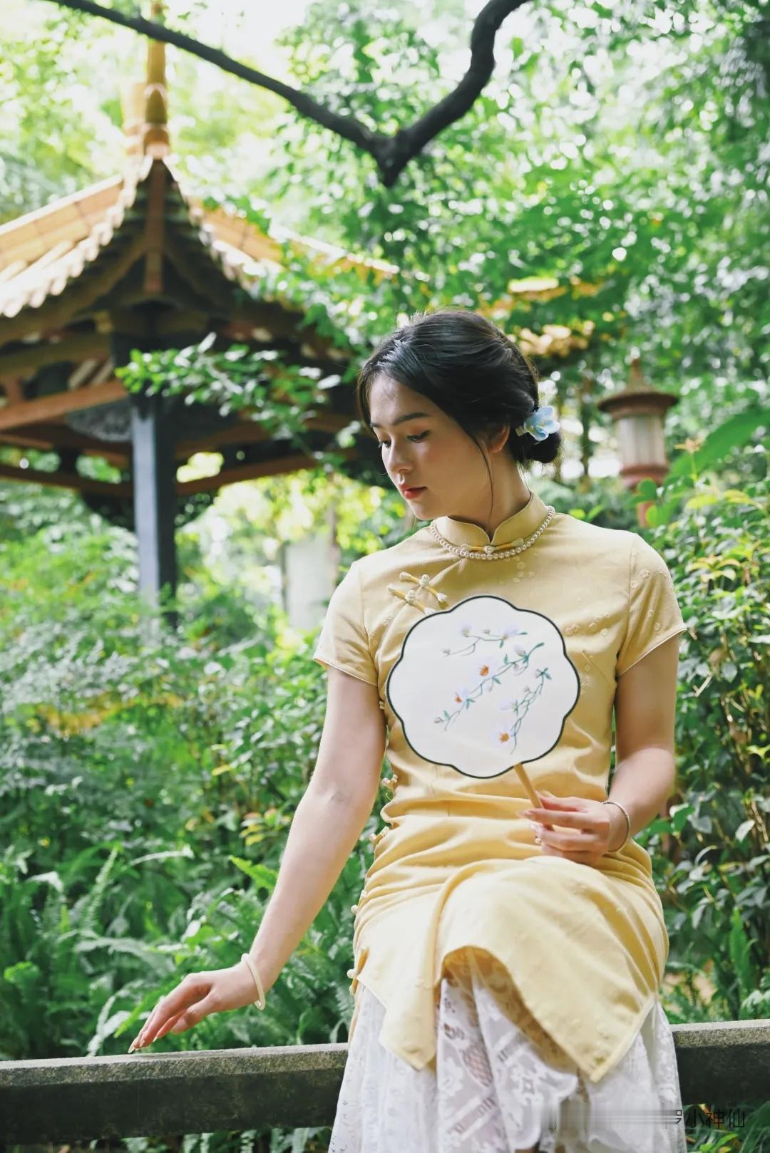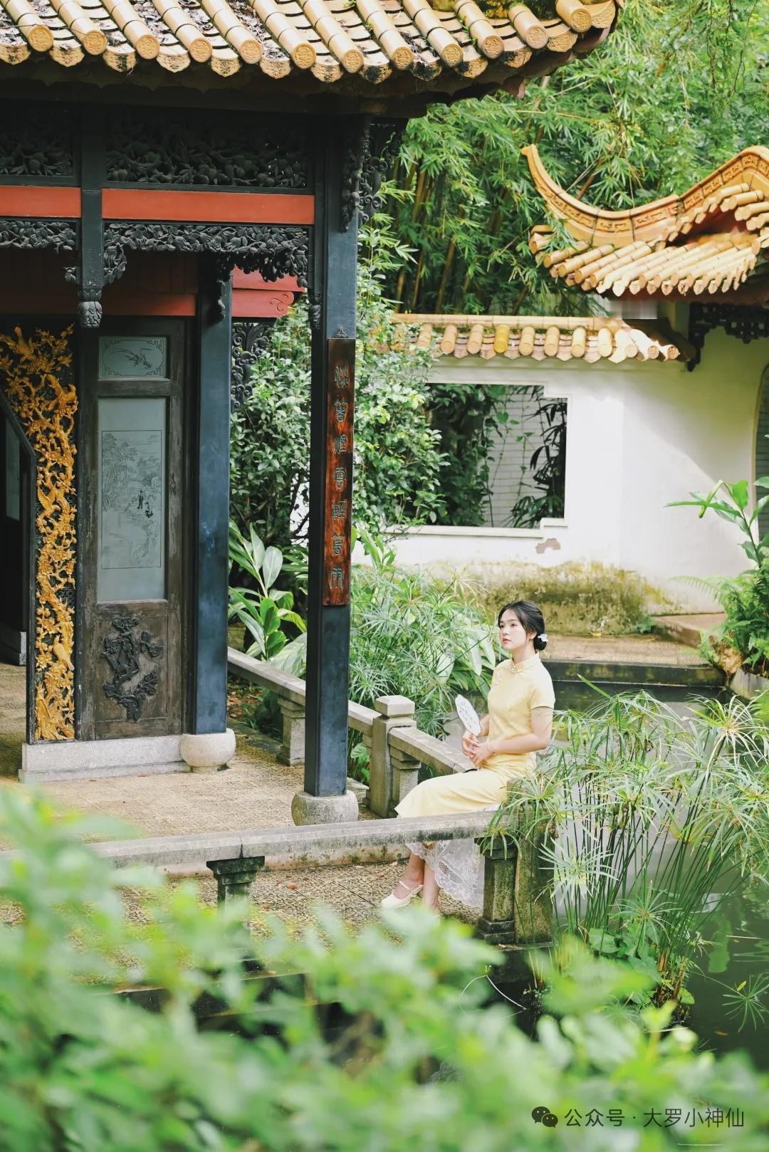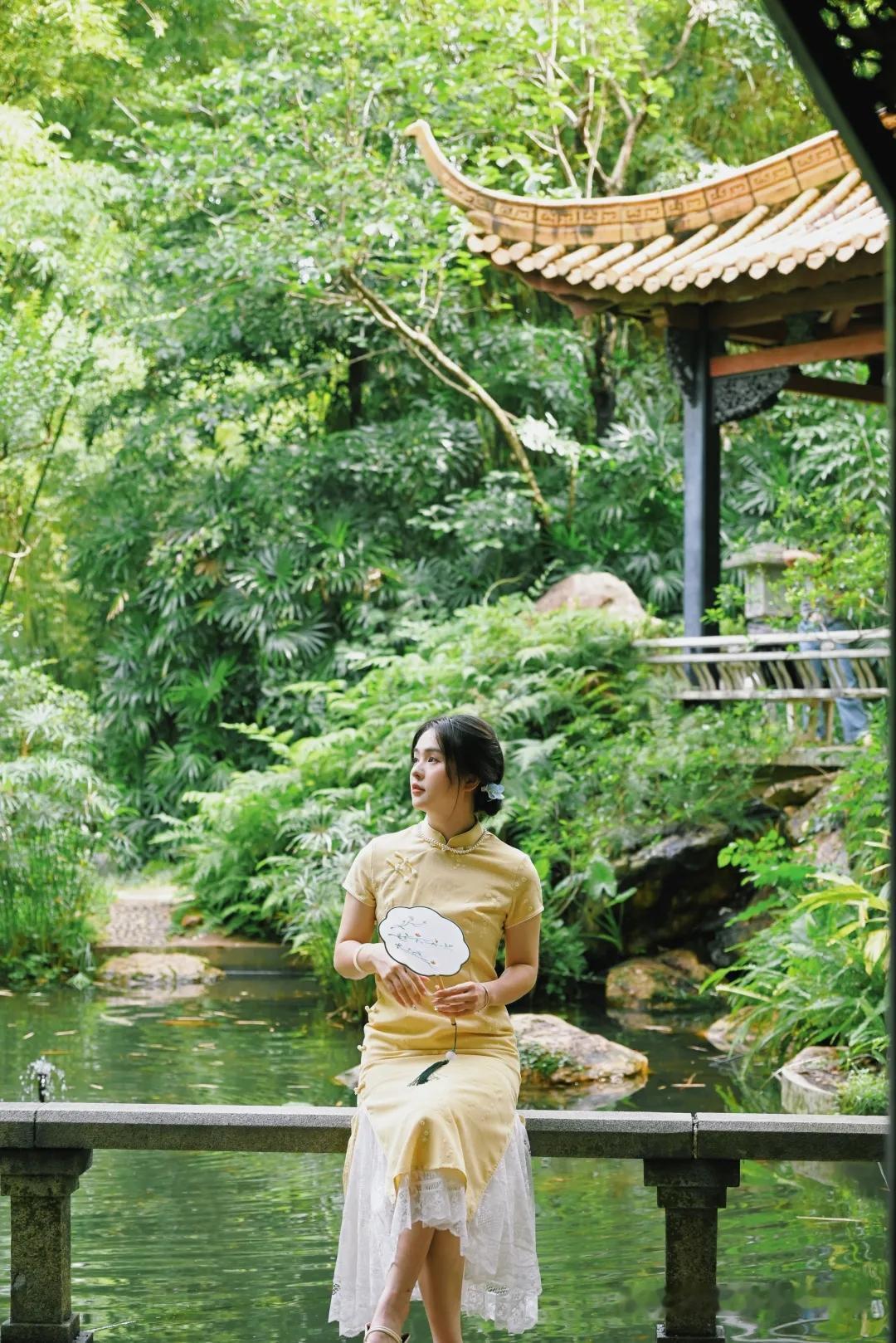雨中漫步,红衣女子撑伞过桥,古韵悠长。