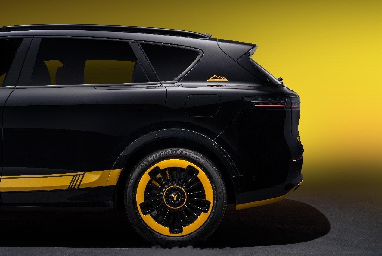 外观上搭载专属「暗影流光」套件——车漆在阳光下会像流星一样变幻色泽,黑金撞色+亮黄拉花、黄色卡钳、20英寸轮毂,整台车自带速度感和能量感。尾标换成了特别的玄金色,视觉冲击拉满。