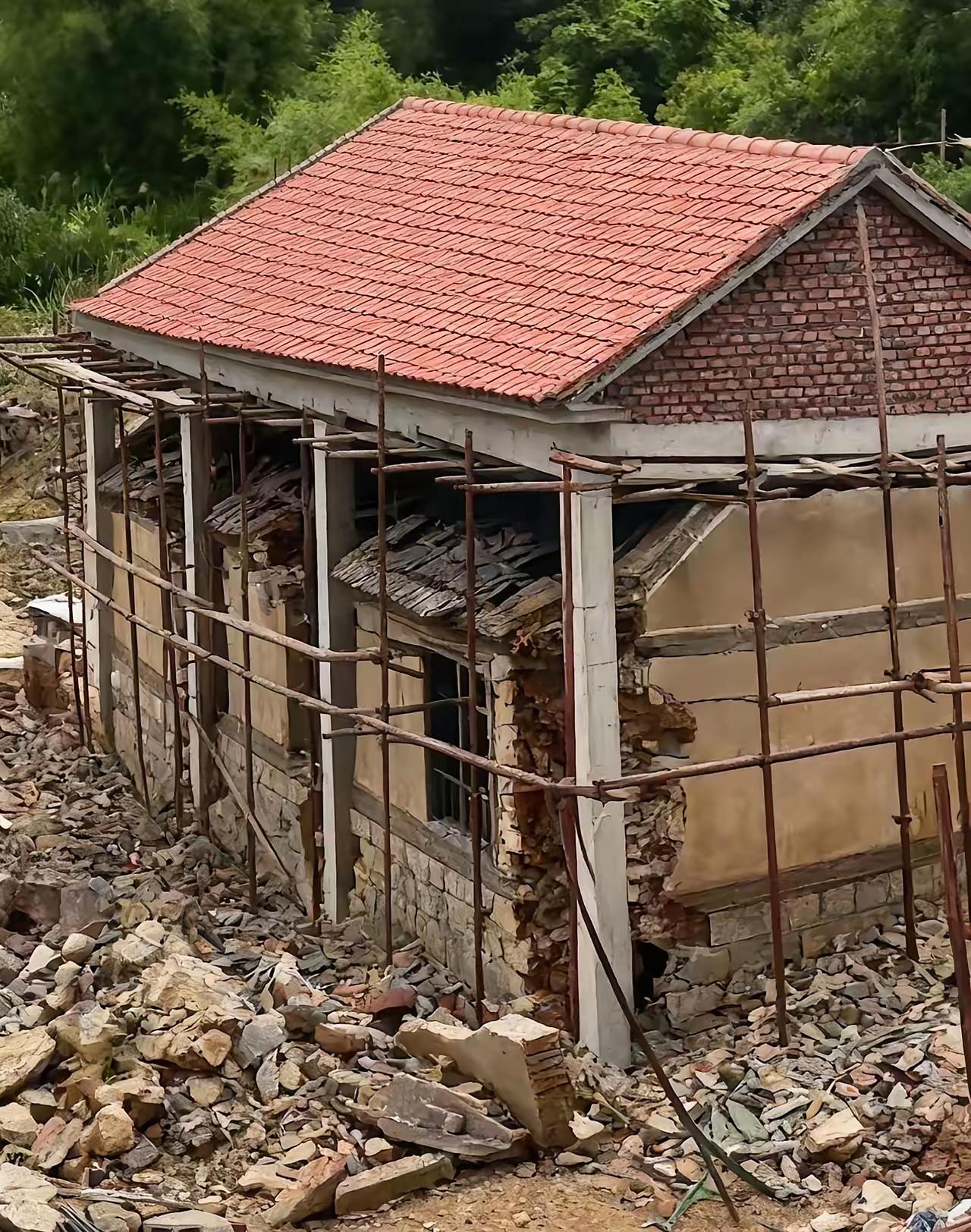 这样盖房子违法吗? 农村人真的太聪明了,国家政策是,不符合重建的房子,不能重建,可以维修,那这样维修合理吗? 这房子不是维修,是从根基开始重新打水泥柱子,四周打圈梁,从上面把旧的顶掀掉,换成新的房顶,然后再把外墙垒起来,把旧墙扒掉,这样看起来是维修,实际是重建,只不过是没有把旧房拆完再建,这是扒一点,盖一点,慢慢的盖。 这样翻新房子,比新盖还费劲,因为旧的墙没有一次性推倒,盖一点挪一点,真的很麻烦。 农村有很多这样的人,怕审批建房麻烦,或者怕审批不通过,就这样劳民伤财。这种方法真的不能提倡,这种建房也不安全,头重脚轻,底下还没有做好地基,房顶都己建好,根基不牢固。 盖房还是要先审批,批下来后才能重新盖。维修小范围可以,如果是全部翻新,这样很危险,住进房子里也不安全。 朋友们,你们那里有这样维修房子的吗?欢迎讨论! 声明(图片来源于网络,侵权联系删除)