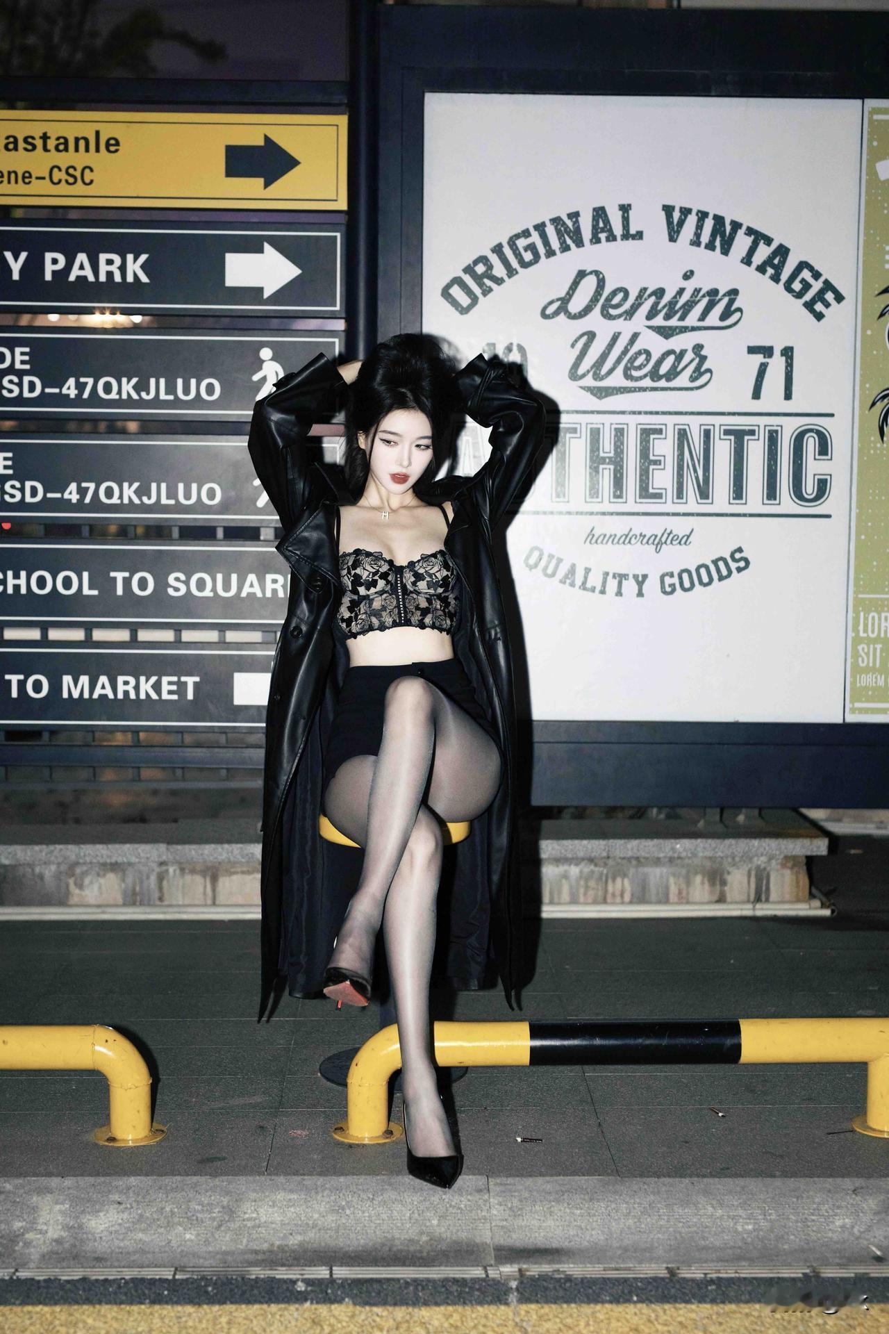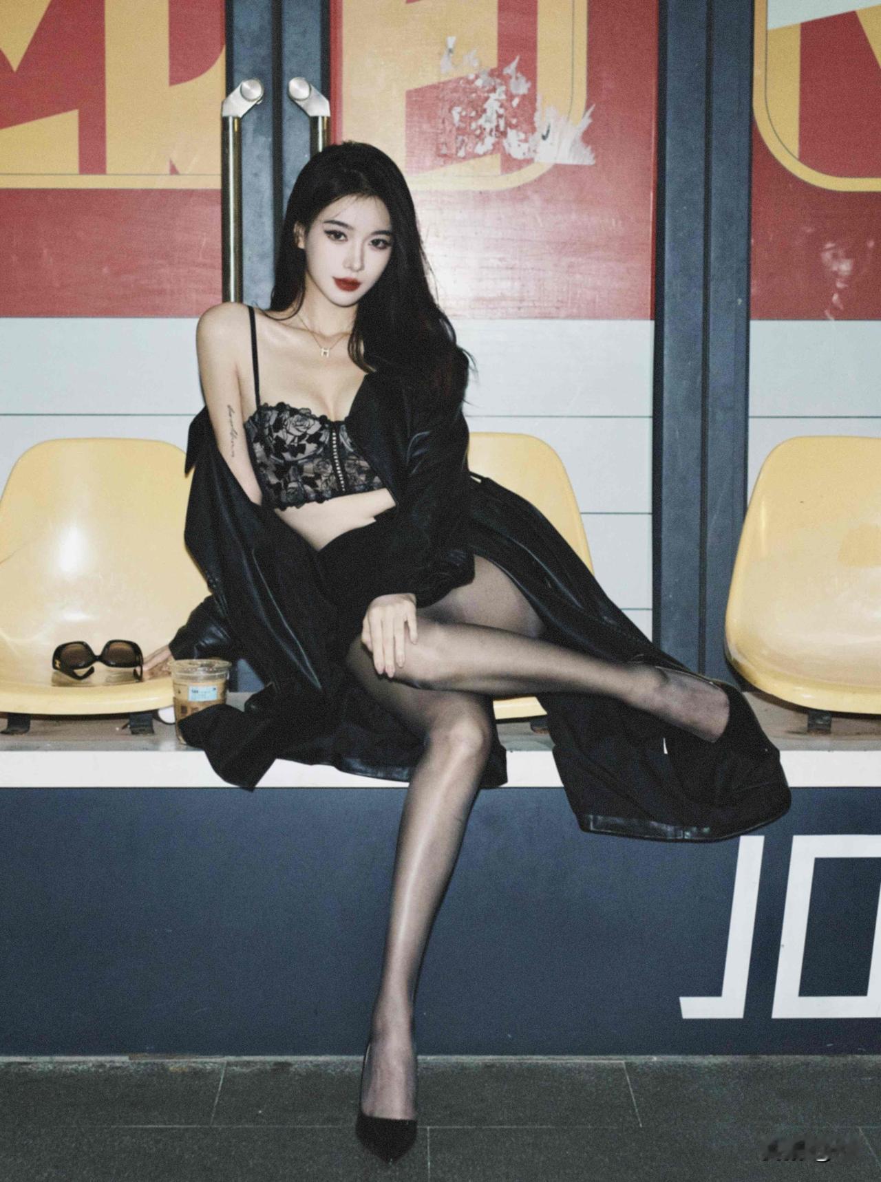 宝子们!今天尝试了不一样的风格,直接被自己帅到!! 黑色皮衣一披,又酷又飒,里面搭蕾丝吊带,纯欲感一下子就出来了~黑丝和尖头高跟鞋的组合,把腿衬得又细又长,走在路上回头率直接拉满! 坐在复古感满满的场景里,来杯冰咖啡,感觉自己就是电影里的女主角!这种又A又媚的风格,你们觉得可吗?