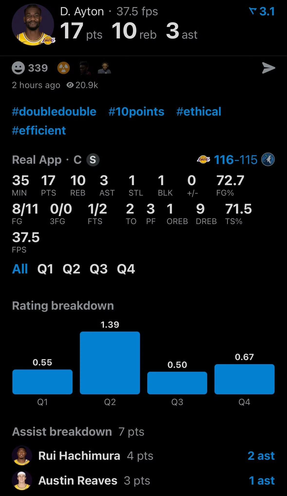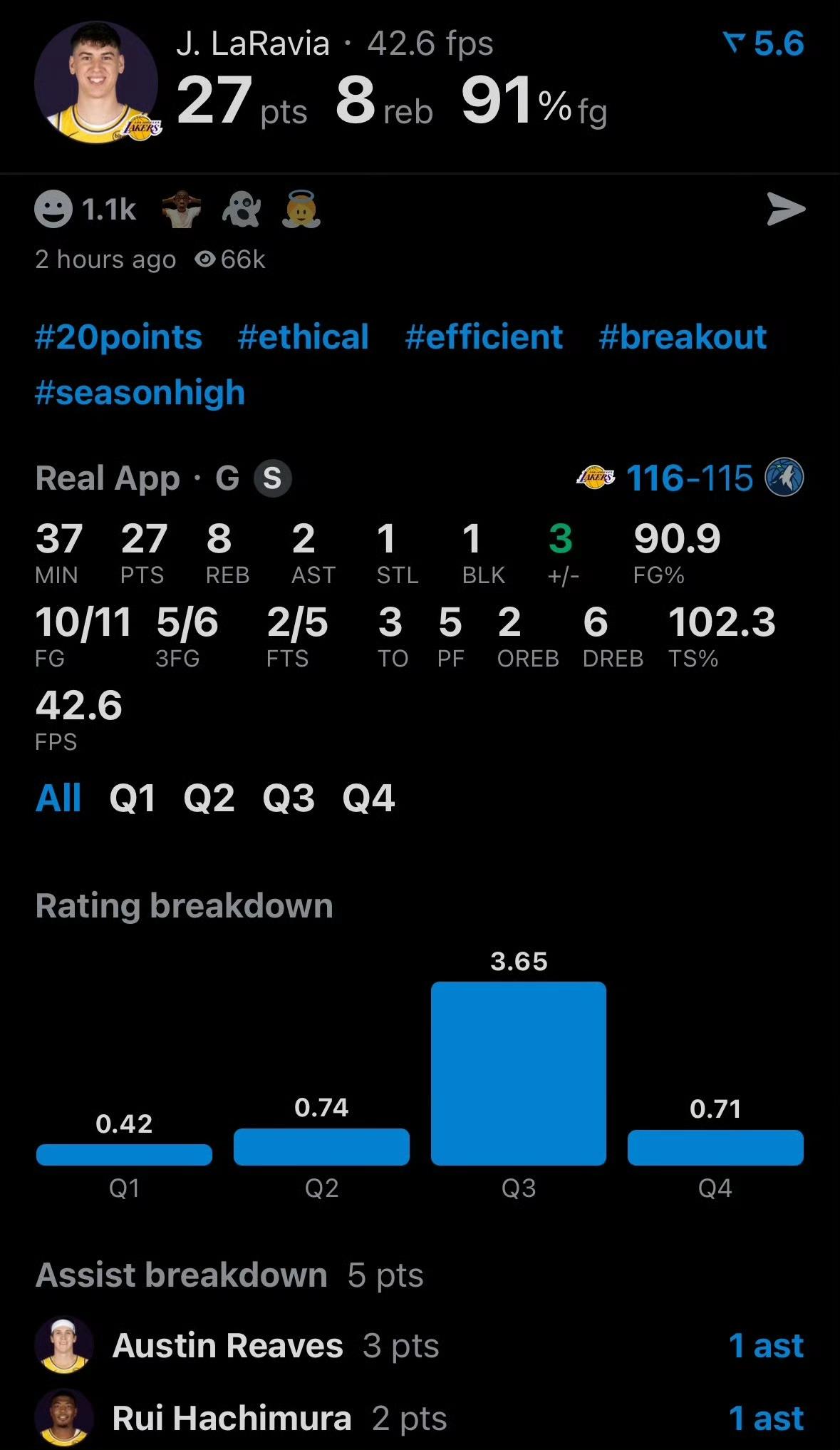 佩林卡的眼光有多毒,看看休赛季引入的3个球员就知道了:拉拉维亚、艾顿、斯玛特。 今天湖人击败森林狼,拉拉维亚是第二大功臣,27分8板2助;艾顿是第三大功臣。 一个球队有个正牌中锋是多么重要,艾顿绝对物有所值。球迷这么评价艾顿:说最软的话,打最硬的仗。 斯玛特由于伤病已经缺席两场比赛,他在场上可以给球队带来激情,他的作用不能用数据体现出来。