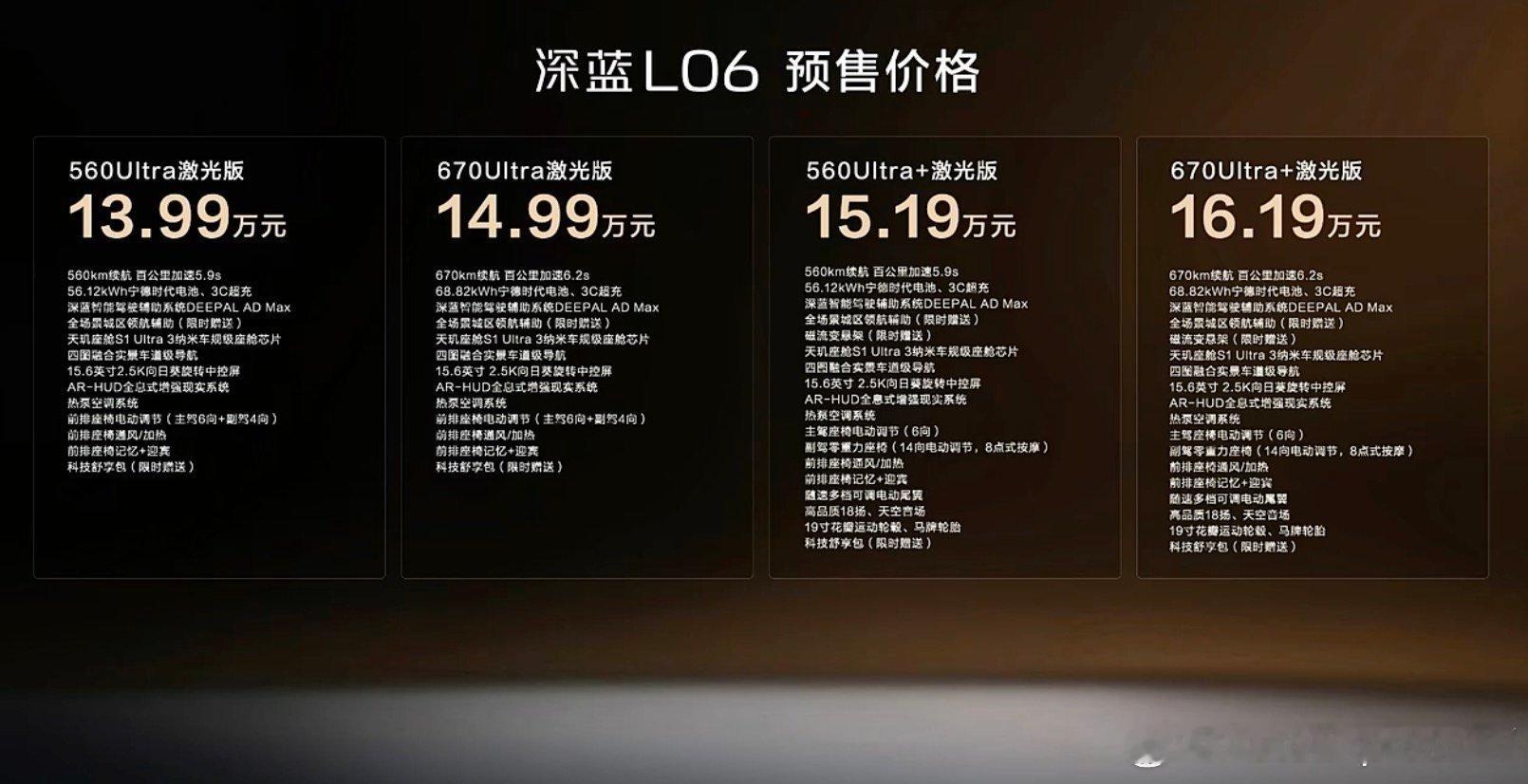 今晚上市的深蓝L06科技配置挺不错的,四个版本选谁好?其实刨除560km和670