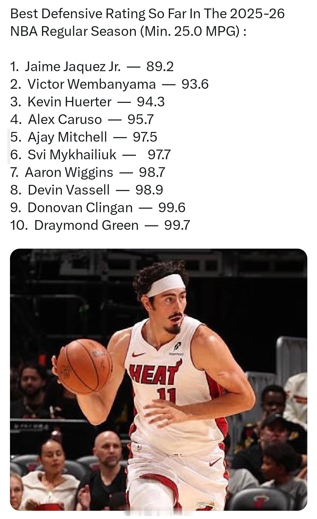 目前为止,哈克斯的防守效率排在第1,比文班还高[捂嘴哭](至少出战25分钟)