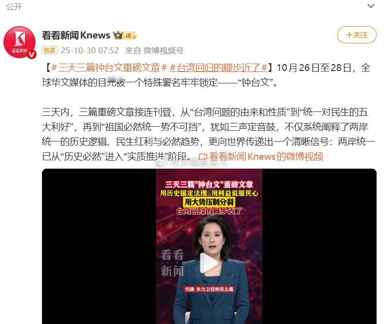 三天三篇钟台文重磅文章, 台湾回归的脚步近了,热点观点
