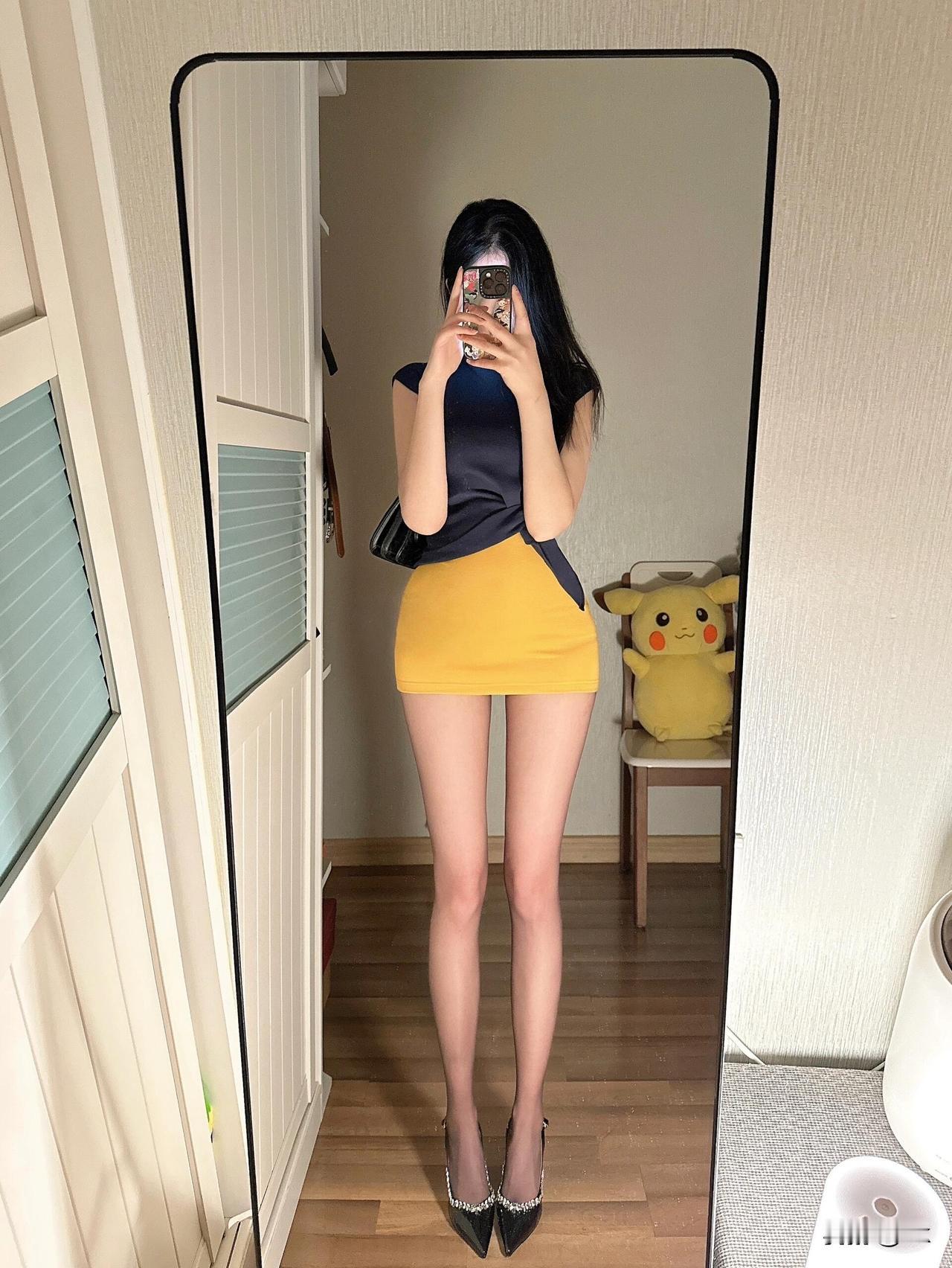 宝子们!今天这套撞色穿搭我能吹爆!藏蓝上衣+亮黄色包臀裙,视觉冲击力绝了,瞬间把腰线和臀线都衬得刚刚好~再搭双黑色细跟鞋,腿直接长到镜子外! 家里的皮卡丘公仔意外成了背景板,可爱又反差萌~你们觉得这套撞色成功吗?