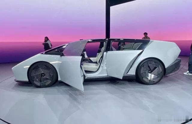 在本田展台最大的感悟就是他们开始发力了,0系列的这些车型设计都非常大胆,这台 0 Saloon 概念车是他们0系列里最有辨识度的一台,实在太扎眼了,这种复古又未来的楔形车身设计把车头压得极低,像贴在地面起飞一样,某一瞬间让我想起了理想Mega。