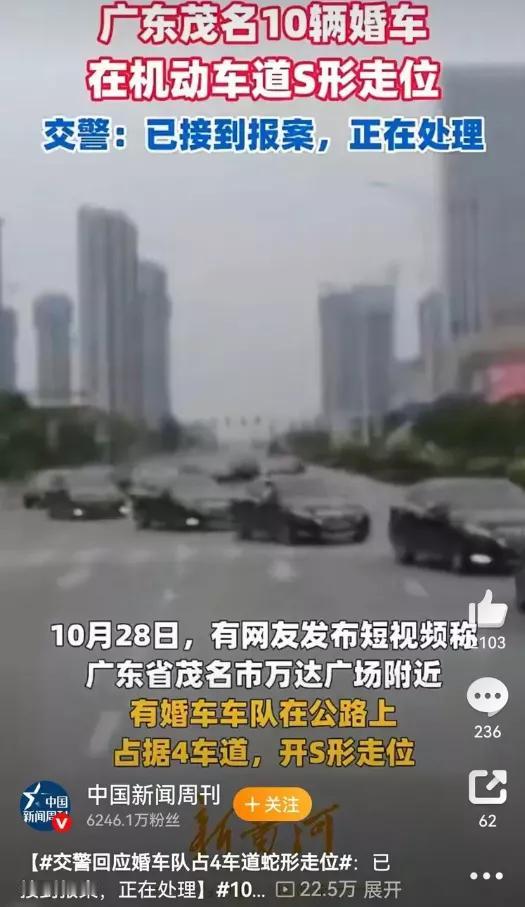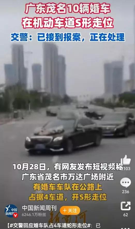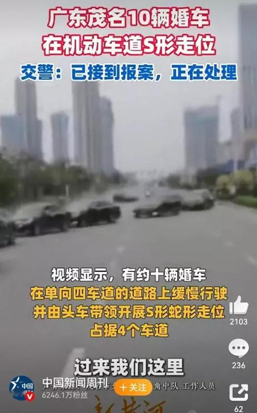 这波操作真是让人惊掉下巴!广东茂名一支婚车队,为了所谓排场,竟在万达广场外的四车道主干道上集体玩起S形走位,十来辆婚车扭成贪吃蛇,把整条路堵得死死的。后面车辆被迫龟速爬行,喇叭按到冒火,喜事办成了马路惊魂。 交警可不惯着!羊角中队直接传唤所有司机接受调查,一句直行道不能随意变道点明违法本质。话说结婚图顺遂,偏要走曲折,这不咒自己吗?这波操作可太“刑”了,建议重修科目一! 其实,喜庆未必非要嚣张。此前多地都有婚车占道,别车翻车的案例,罚单吃了,喜事也添了堵。婚姻的长久靠的是踏实经营,而不是马路上的蛇皮走位。公共道路不是私人秀场,安全这根弦,绷紧了才是真吉利! 规则意识不该为特殊场合让步。婚礼的仪式感应重在尊重与温暖,而非博眼球的危险操作。若真追求创意,何不申请合规场地拍大片?既安全又体面。